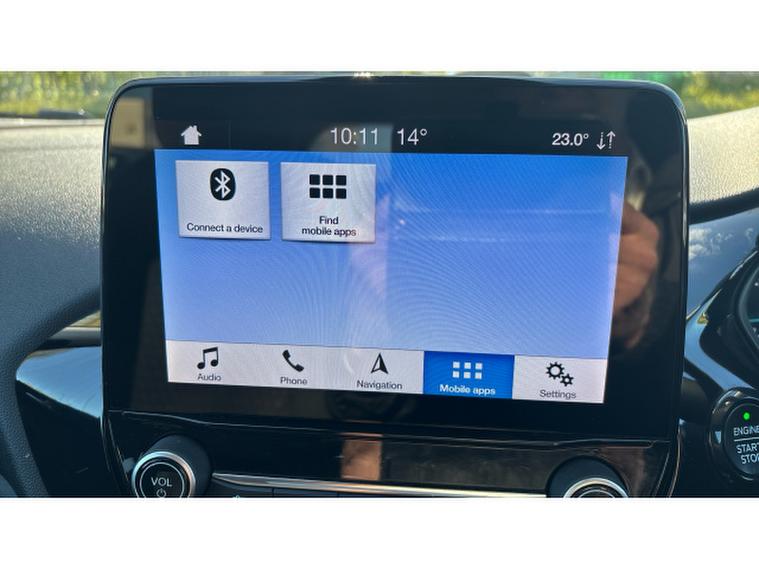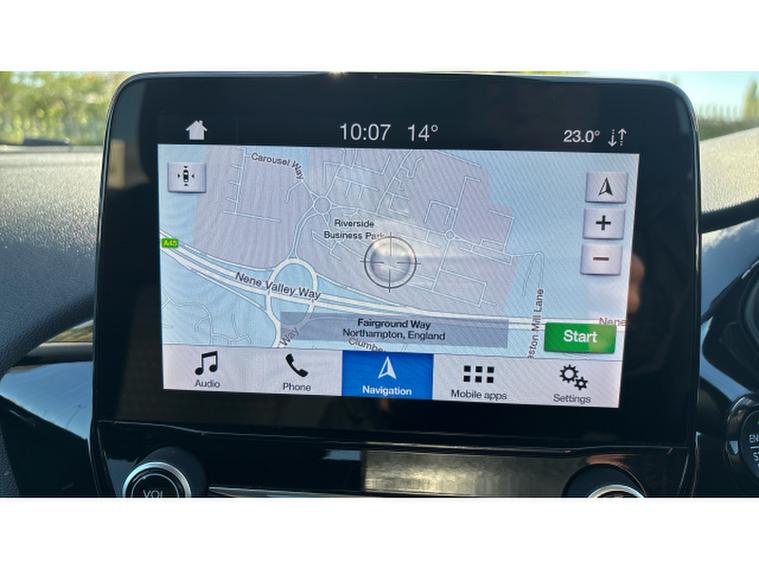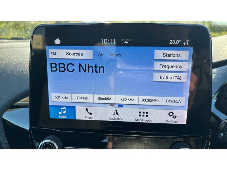 The car looks great finished in gleaming metallic blue paintwork with 16 inch alloys and comes with an impressive live of standard features including air con, cruise control, sat nav, parking sensors, heated windscreen, Apple car-play/Android auto, blue-tooth, USB, keyless start, LED lights with auto lights and wipers plus much more. It comes with the efficient 1.0 EcoBoost petrol engine giving the perfect blend of responsive performance and excellent economy figures along with a low insurance group and is ULEZ compliant.