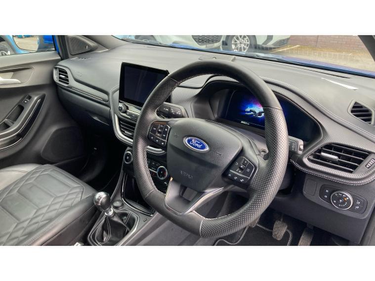 Ford Puma 1.0 EcoBoost Hybrid mHEV ST-Line Vignale 5dr Petrol Hatchback, , Vertu Ford Durham are delighted to have this great looking Ford Puma ST-Line Vignale 155, finished in Desert Island Blue metallic paint. Our Puma has only had 1 owner from new and comes with a generous specification All our vehicles at Vertu Motors come fully prepared with our peace of mind Main Dealer guarantee. Every vehicle is fully prepared both mechanically and cosmetically up to the highest standard which even includes having any tyre replaced that has less than 3mm tread depth (legal limit is 1.6mm). Every vehicle will have a minimum of 9 months MOT remaining and you will not have to service the vehicle for at least 6 months or 6000 miles. We ensure that you will have a minimum of 2 keys and to give you even further reassurance we also supply you with a 3 months complimentary warranty and a 14-day money back guarantee. Our vehicles also come with a full HPI vehicle check assuring you that your new vehicle will have no registered accident claims reported, or any outstanding finance, it also shows the vehicle has not been imported. In addition to this we also do a full Government VOSA report check to verify the mileage on all cars over 3 years old. This service comes free of charge to all our customers unlike other main dealers who charge you an admin fee for this service. We also offer nationwide delivery on all our vehicles, so call today to arrange a viewing.