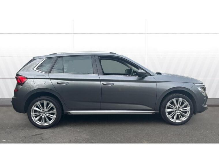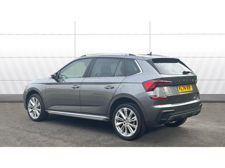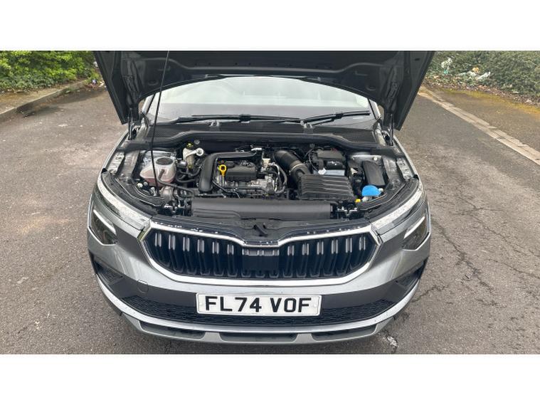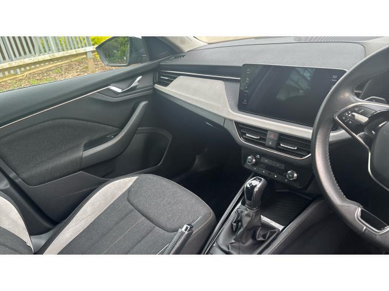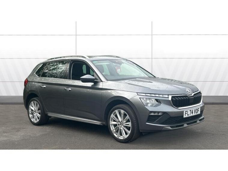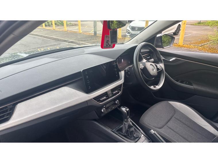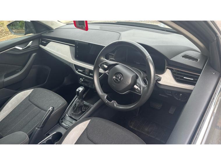 Skoda Kamiq 1.0 TSI SE L 5dr DSG Petrol Hatchback, , The 2024 Skoda Kamiq 1.0 TSI SE L DSG is a standout compact SUV that balances premium features with everyday usability. Following its recent facelift, this model benefits from the updated evo2 engine, a 1.0-litre three-cylinder turbocharged petrol unit that now produces 116 PS. When paired with the 7-speed DSG automatic gearbox, it delivers a smooth driving experience with a 062 mph time of 10.2 seconds and a respectable combined fuel economy of around 50 mpg. The SE L specification enhances the Kamiqs kerb appeal and interior comfort significantly over the entry-level models. On the outside, it is distinguished by 18-inch Fornax alloy wheels, chrome window surrounds, and rear privacy glass. Inside, the cabin feels more upscale thanks to the Lodge interior, which features grey and black microsuede upholstery and customisable ambient lighting. Practicality remains at the core of the Kamiq's design. It offers a generous 400-litre boot and plenty of rear legroom for a car of its size. It also retains Skodas signature Simply Clever touches, such as the umbrella tucked into the drivers door and an ice scraper stored in the fuel filler cap. Safety is equally high-priority, with Front Assist, Lane Assist, and Traffic Sign Recognition all included as standard to maintain its 5-star Euro NCAP rating.