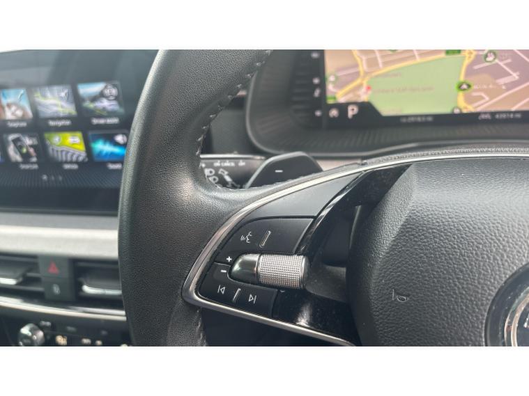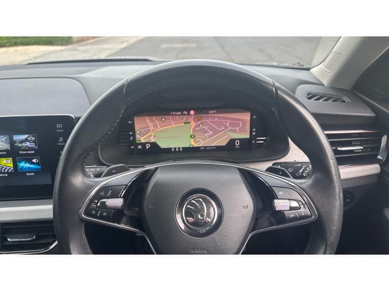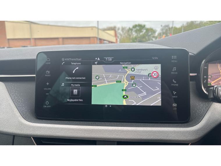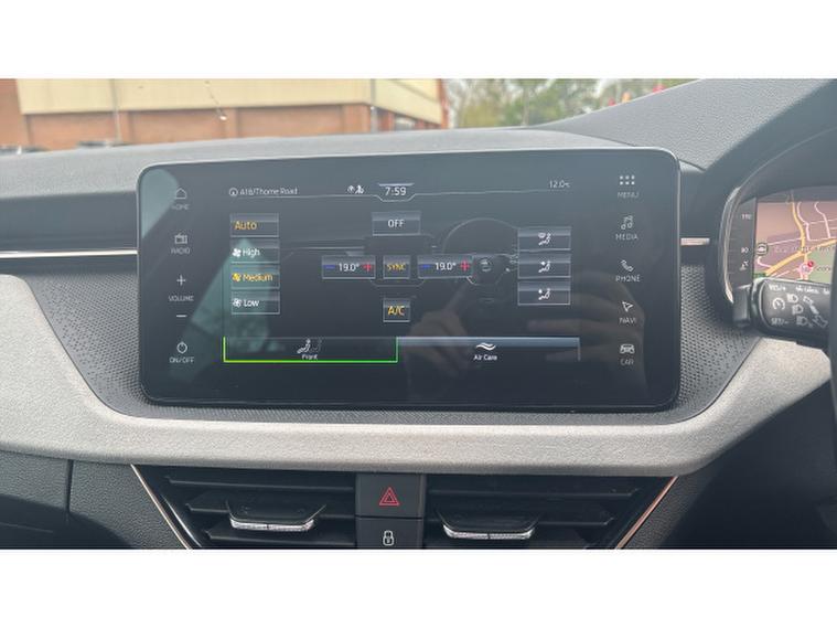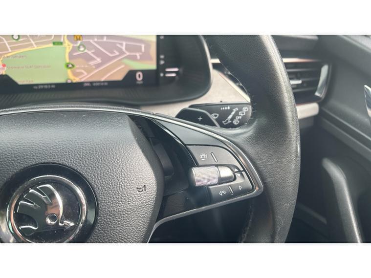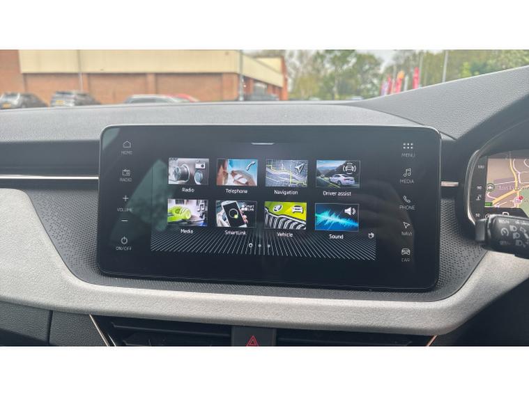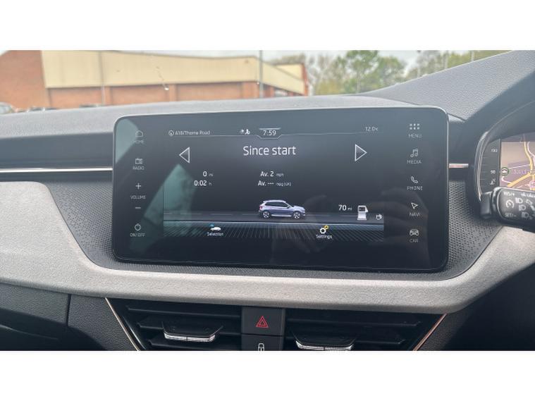 Skoda Kamiq 1.0 TSI SE L 5dr DSG Petrol Hatchback, , The 2024 Skoda Kamiq 1.0 TSI SE L DSG is a standout compact SUV that balances premium features with everyday usability. Following its recent facelift, this model benefits from the updated evo2 engine, a 1.0-litre three-cylinder turbocharged petrol unit that now produces 116 PS. When paired with the 7-speed DSG automatic gearbox, it delivers a smooth driving experience with a 062 mph time of 10.2 seconds and a respectable combined fuel economy of around 50 mpg. The SE L specification enhances the Kamiqs kerb appeal and interior comfort significantly over the entry-level models. On the outside, it is distinguished by 18-inch Fornax alloy wheels, chrome window surrounds, and rear privacy glass. Inside, the cabin feels more upscale thanks to the Lodge interior, which features grey and black microsuede upholstery and customisable ambient lighting. Practicality remains at the core of the Kamiq's design. It offers a generous 400-litre boot and plenty of rear legroom for a car of its size. It also retains Skodas signature Simply Clever touches, such as the umbrella tucked into the drivers door and an ice scraper stored in the fuel filler cap. Safety is equally high-priority, with Front Assist, Lane Assist, and Traffic Sign Recognition all included as standard to maintain its 5-star Euro NCAP rating.