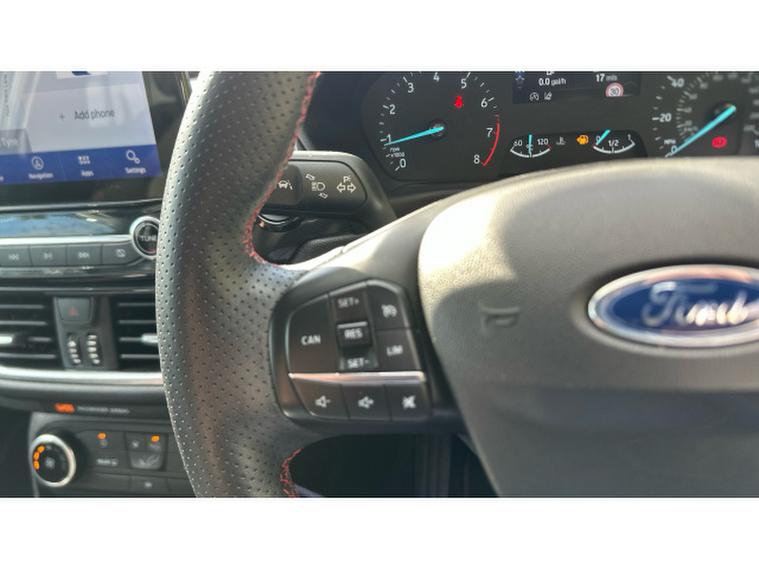 The ST-Line trim adds athletic styling with sports body kit, unique alloy wheels, sports suspension and a driver-focused interior featuring supportive sports seats, flat-bottom steering wheel and premium finishes throughout. Inside, youll enjoy Ford SYNC infotainment with touchscreen display, Apple CarPlay and Android Auto, Bluetooth connectivity, DAB radio and cruise control for every journey.