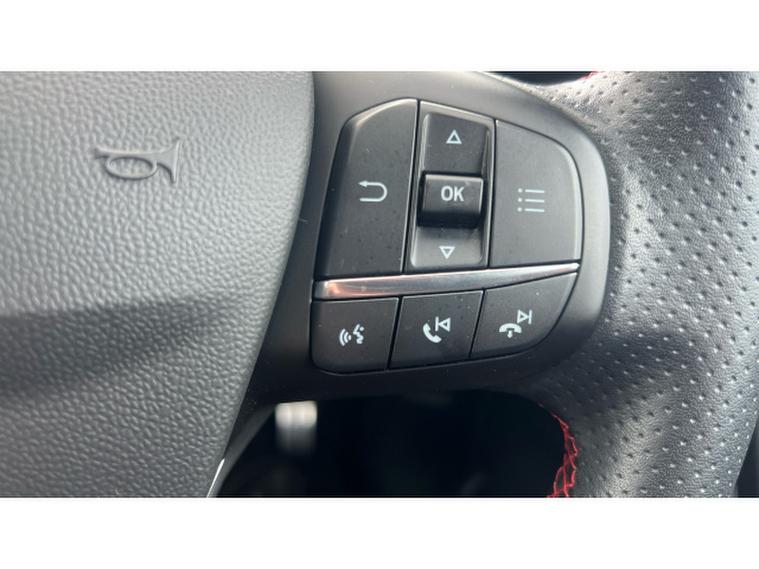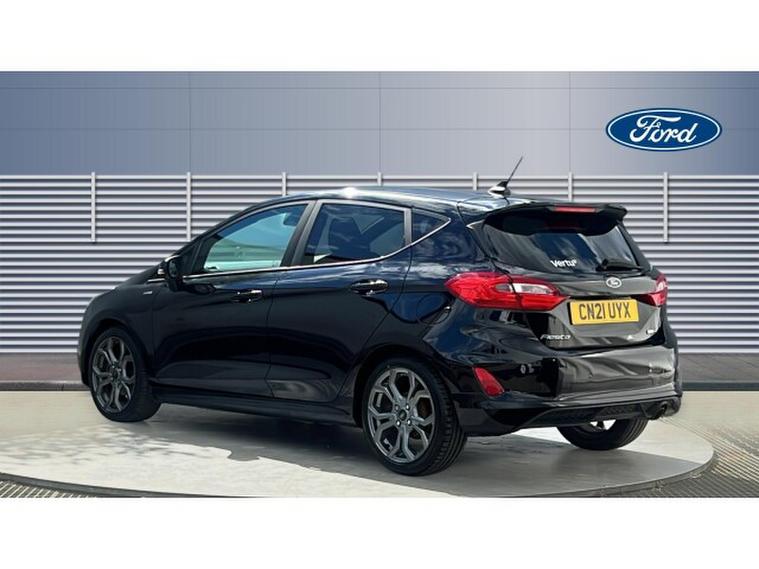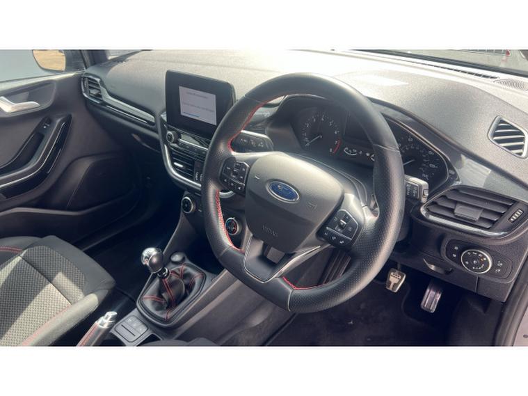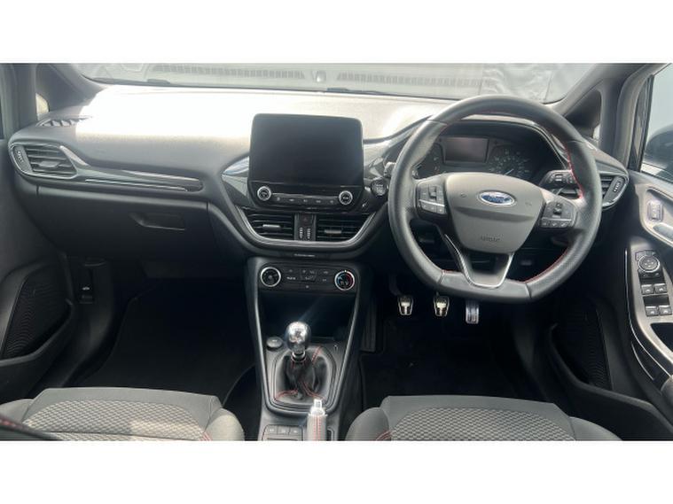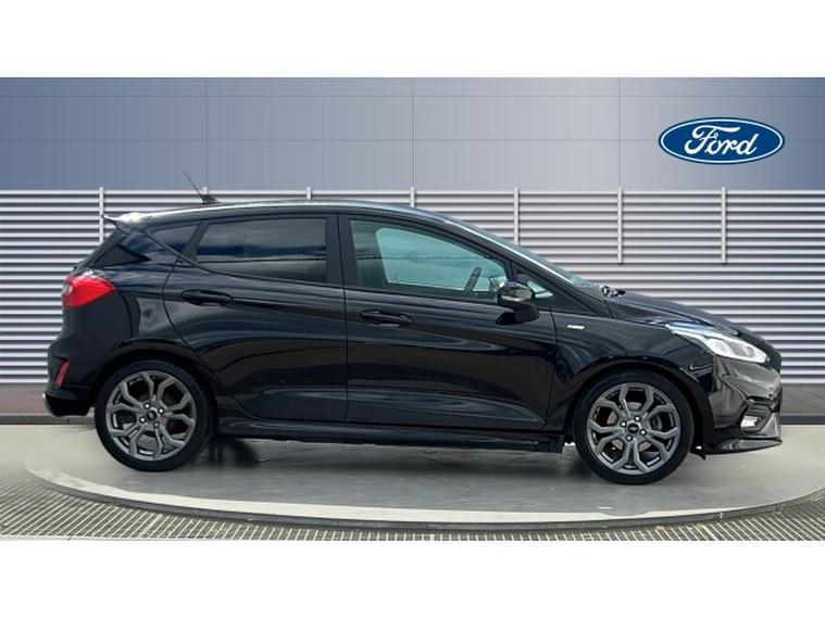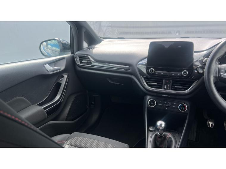 Ford Fiesta 1.0 EcoBoost Hybrid mHEV 125 ST-Line Edition 5dr Petrol Hatchback, , Gloucester Ford have this Ford Fiesta 1.0 EcoBoost mHEV 125 ST-Line Edition finished in Agate Black. This Fiesta mHEV 125 ST-Line Edition in Agate Black is a stylish, efficient, and well-equipped hatchback that delivers an excellent all-round driving experience. Its sleek and sporty ST-Line design gives it a dynamic presence on the road, enhanced by distinctive body styling, a bold front grille, and a refined Agate Black finish that adds a touch of sophistication and modern appeal. Powered by the advanced 1.0-litre EcoBoost mild hybrid (mHEV) engine, this Fiesta produces 125PS, offering a smooth and responsive drive while maintaining impressive fuel efficiency. The mild hybrid technology intelligently supports the engine, helping to reduce fuel consumption and emissions without compromising performance, making it ideal for both city commuting and longer motorway journeys. Inside, the cabin is thoughtfully designed with comfort and practicality in mind. The ST-Line Edition features supportive sports-style seats, quality materials, and subtle red stitching that enhances its sporty character. The intuitive Ford SYNC 3 system provides seamless connectivity, with an easy-to-use touchscreen interface, smartphone integration, and access to navigation and entertainment features, ensuring every journey is enjoyable and connected. Rear parking sensors add an extra layer of convenience and safety, making manoeuvring in tight spaces simple and stress-free. Combined with responsive steering, compact dimensions, and excellent visibility, the Fiesta is perfectly suited to urban environments while still being comfortable on longer drives. Overall, the Ford Fiesta mHEV 125 ST-Line Edition stands out as a smart, reliable, and stylish choice. With its blend of sporty design, advanced hybrid efficiency, and modern technology, it offers outstanding value and driving enjoyment, making it an ideal car for those seeking practicality without sacrificing performance or style.