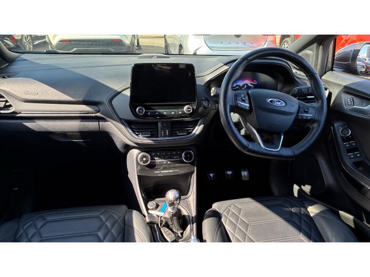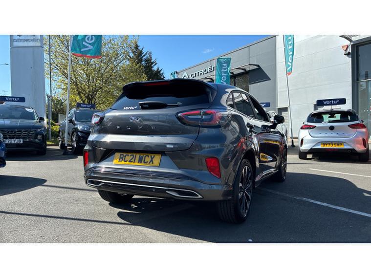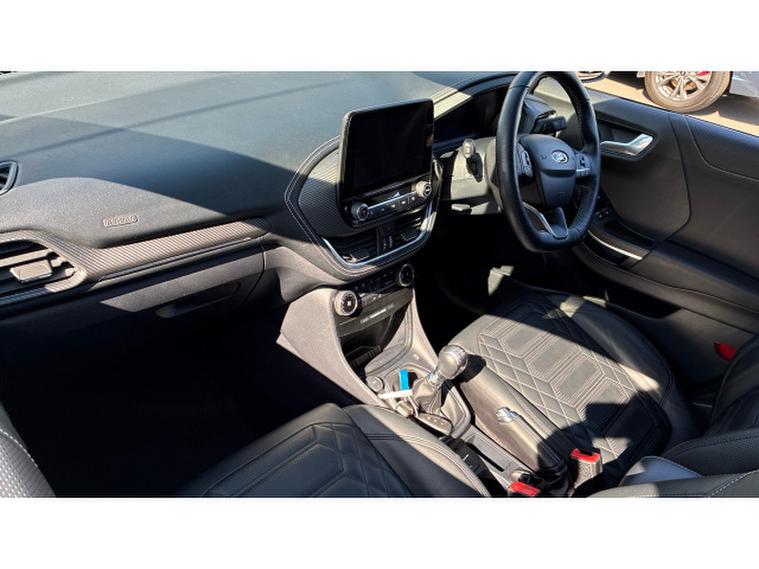 Ford Puma 1.0 EcoBoost Hybrid mHEV 155 ST-Line Vignale 5dr Petrol Hatchback, , This 2021 Ford Puma ST-Line Vignale boasts exceptionally low mileage for its age, having covered just 22, 462 miles. This stylish compact SUV features a responsive 1.0L petrol engine and meets Euro 6 emissions standards. The ST-Line Vignale trim offers a premium feel, enhanced by the Comfort Pack which includes heated seats and a heated steering wheel for those colder journeys. Practicality is also key, with keyless entry and convenient wireless phone charging. For added peace of mind, it is equipped with Electronic Stability Control including Traction Control and Emergency Brake Assist, alongside sporty alloy pedals.