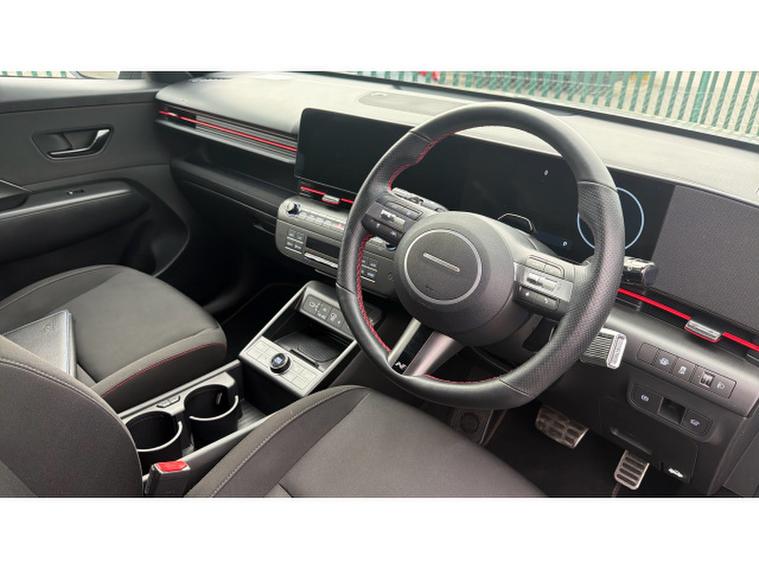 Hyundai KONA 1.6 Hybrid 129 N Line 5dr DCT Hybrid Hatchback, , This 2025 Hyundai Kona 1.6 Hybrid 129 N Line 5dr DCT, finished in stylish grey, is an excellent example of a nearly new crossover that blends modern design, efficiency and everyday practicality. With just over 8, 000 miles on the clock, it offers a fresh, well-cared-for feel and represents outstanding value compared to buying new.