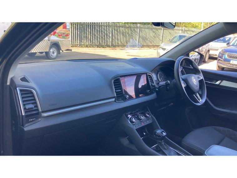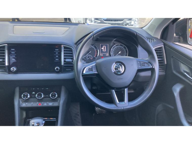 Skoda Karoq 1.5 TSI SE 5dr DSG Petrol Estate, , This 2019 Skoda Karoq TSI SE offers exceptional value with its remarkably low mileage of just 41, 000 miles for its age. This Euro 6 compliant 1.5 litre petrol engine is housed within the well appointed SE trim, offering a comfortable and practical driving experience. You'll appreciate the convenience of rear parking sensors, which include rear parking assistance, and the dual zone climate control air conditioning to keep everyone comfortable. The light and rain sensor automatically activates the headlights and adjusts the rear view mirror, while DAB digital radio and Bluetooth connectivity ensure you stay entertained and connected on every journey.