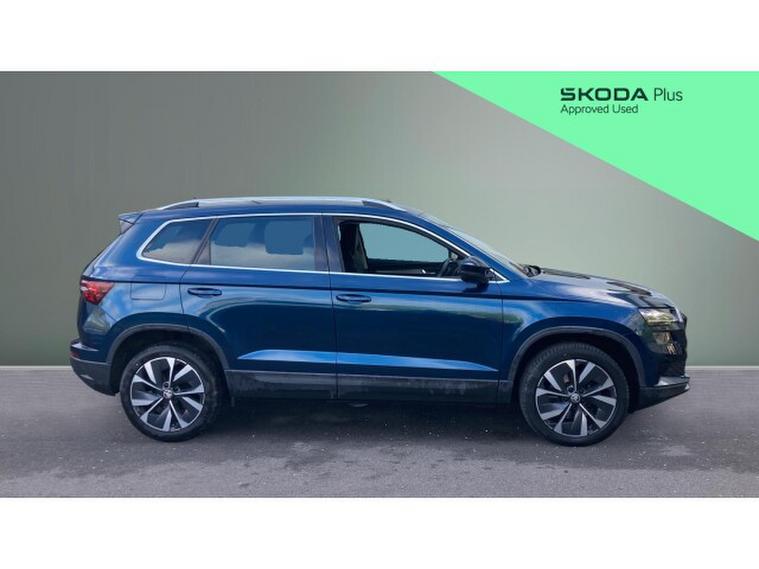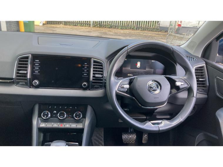Skoda Karoq 1.5 TSI SE L 5dr DSG Petrol Estate, , This 2023 Skoda Karoq TSI SE L is a Skoda manufacturer approved vehicle with only one owner from new, offering peace of mind. This Euro 6 compliant, 1.5 litre petrol model comes in the SE L trim and features LED headlights for enhanced visibility. For effortless parking, it includes a rear view camera and front and rear parking sensors. Inside, you'll find a comfortable 2 spoke leather heated multi function steering wheel with DSG paddles, and dual zone climate control to keep everyone comfortable.