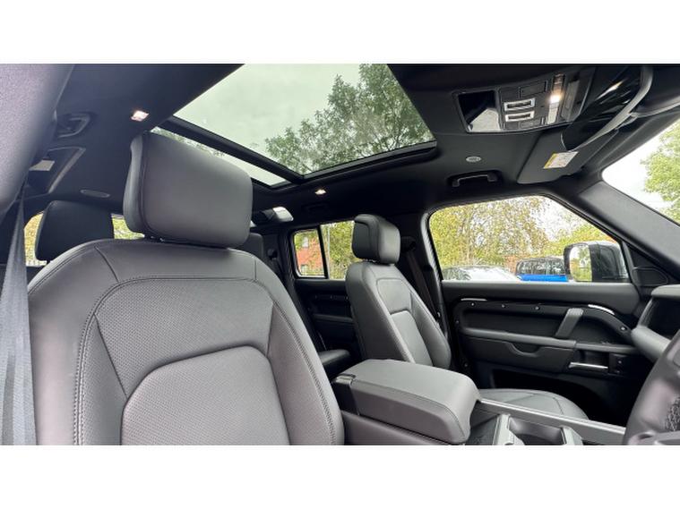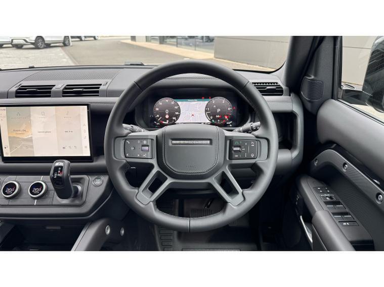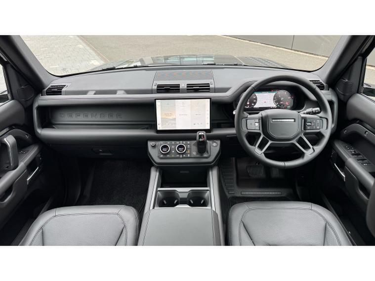 Land Rover Defender 3.0 D350 X-Dynamic HSE 110 5dr Auto Diesel Estate, , This Land Rover Defender 110 D350 X Dynamic HSE from 2025 is a Land Rover manufacturer approved vehicle with only one owner. It features a powerful 3.0L Diesel engine and a Four Wheel Drive drivetrain, ensuring capability in various conditions. The X Dynamic HSE trim level includes a Cross Car Beam in Dark Grey Powder Coat Brushed Finish and an Extended Black Exterior Pack. Inside, you'll find comfortable seating for eight, with 60-40 Load Through Rear Seats offering manual slide and recline functionality, complete with a centre armrest. The cabin is further enhanced by Cabin Air Purification Plus and an Air Quality Sensor, all contributing to a refined driving experience.