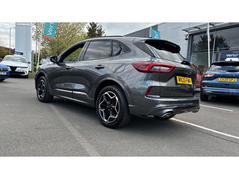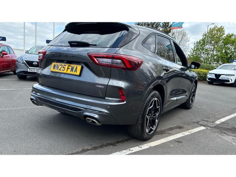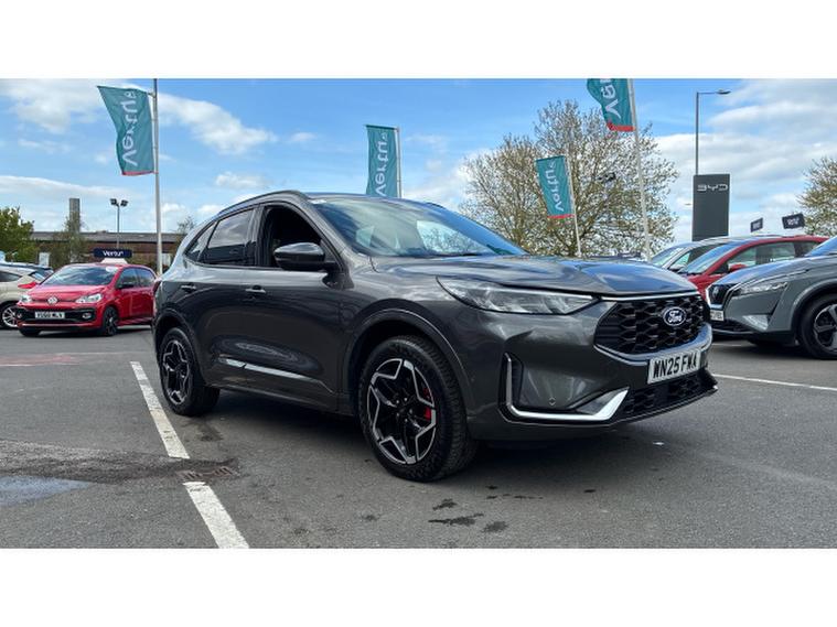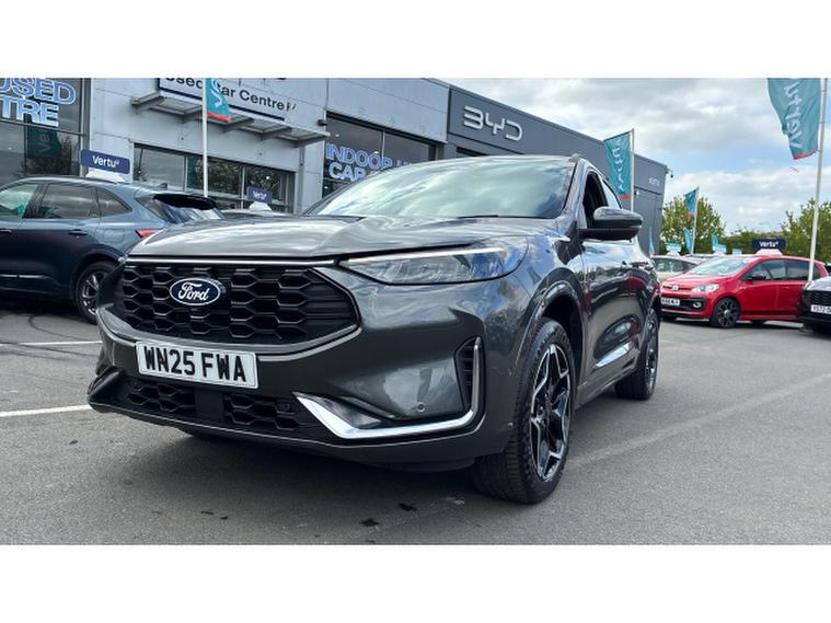 Ford Kuga 2.5 PHEV ST-Line X 5dr CVT Estate, , This 2025 Ford Kuga ST Line X is a superb example, having had only one owner from new. It boasts a 2.5 litre petrol plug in hybrid engine, meeting Euro 6 emissions standards. This ST Line X model comes equipped with a power opening panoramic roof, offering an expansive view. Inside, you'll find the advanced Ford SYNC 4 Navigation system, complete with Android Auto, Apple CarPlay, and a premium branded sound system for an enhanced audio experience. Convenience is key with the Ford Keyfree System, allowing keyless entry and a Ford Power starter button. Driving is made easier with Adaptive Cruise Control and front and rear parking sensors, ensuring peace of mind in all situations.