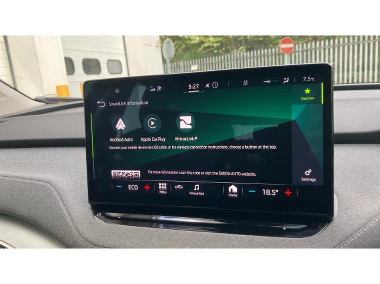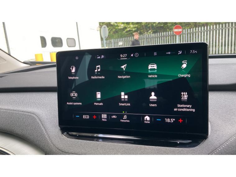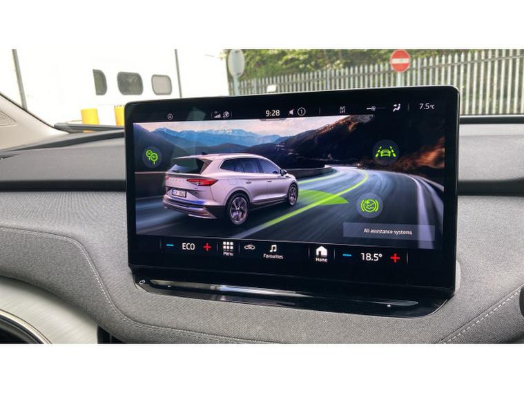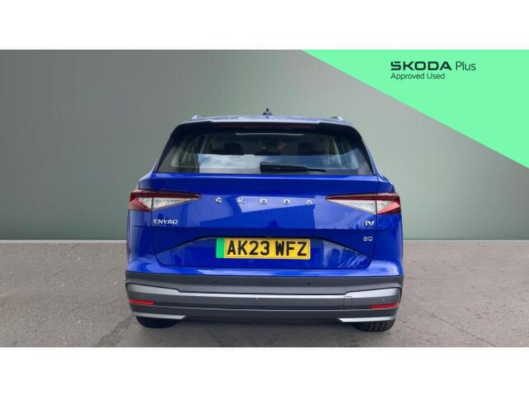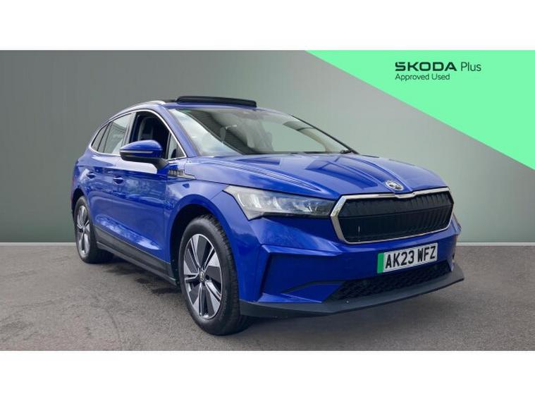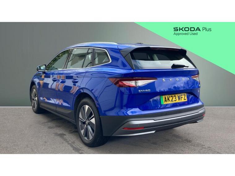 Skoda Enyaq 150kW 80 ecoSuite 82kWh 5dr Auto [125kW] Electric Estate, , This 2023 Skoda Enyaq 80 is a superb example, having had only one owner since new. As a fully electric vehicle, it boasts an impressive battery total capacity of 82 kWh, offering a maximum range of 339 miles when new. This Enyaq is equipped with a fixed panoramic sunroof, providing an airy feel to the cabin, and includes Skoda Connect iV Remote Services, allowing for features like remote air conditioning. For convenience and safety, it features basic LED headlights with daytime running lights, front and rear parking sensors, and a rear view camera.