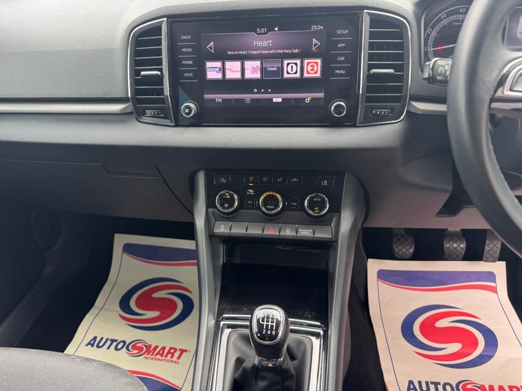 UPGRADE YOUR YETI !! SUPER VALUE PETROL KAROQ, BE QUICK, THESES SELL FAST!! 3 point front/outer rear seatbelts+pre-tensioners, Automatic unlocking of doors in case of impact, Curtain airbags, Driver and passenger airbags, Driver and passenger side airbags, Drivers knee airbag, Fuel supply cut off, Head airbags, Height adjustable front seatbelts + pretensioners, Passenger airbag deactivate switch, Seatbelt warning lamp, Two tone horn, Tyre pressure monitor, Alarm with interior monitoring and tilt sensor, Anti-theft wheel bolts, Electronic immobiliser, Remote central locking, Anti-lock brake system, Electronic parking brake, ESP including MBA, MSR, ASR, EDL, HBA, Hill hold control, Auto dimming rear view mirror with light and rain sensors, Body colour door mirrors, Electric heated + adjustable door mirrors, Aero wiper + intermittent function, Electric front windows, Electric rear windows with child safety lock, Heated rear window, Privacy glass, Black roof rails, Body colour door handles, Body coloured bumpers, Solid paint, Automatic headlight control system, Front fog lights, LED daytime running lights, LED rear lights, Light assistant (coming home/tunnel light), 3 rear height adjustable headrests, 60/40 split folding rear seat back, Backrest release, Driver seat height adjustment, Front seat and rear pockets, Height adjustable front head restraints, Height adjustable passenger seat with lumbar support for both seats, Height adjustable rear head restraints, Isofix system on outer rear seats, Front/rear reading lights, Illuminated luggage compartment, Removable LED light in boot, Sunvisors with illuminated vanity mirrors, 12V Accessory socket in centre console, 12V power point in luggage area, 3 spoke multi-function leather steering wheel, 4 lashing points on luggage floor, Bottle holders, Chrome inner door handles, Cloth upholstery, Folding grab handles with rear coat hooks, Folding tables on the front seat backrests, Front centre armrest with storage compartment, Height/reach adjust steering wheel, Illuminated air conditioned glovebox, Luggage compartment cover, Passenger side net compartment on centre console, Sunglasses storage, Umbrella under front passenger seat, Dual zone automatic air conditioning with humidity sensor and control, Pollen filter, Cruise control, Driver alert system, Driver profile selection, Electro-mechanical Power Assisted Steering, Rear parking sensors, Speed limiter, Multi function trip computer, Outside temperature gauge, Service interval indicator, SmartLink, Bluetooth system, Voice control system,