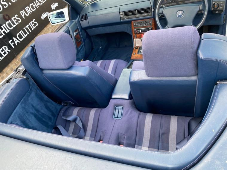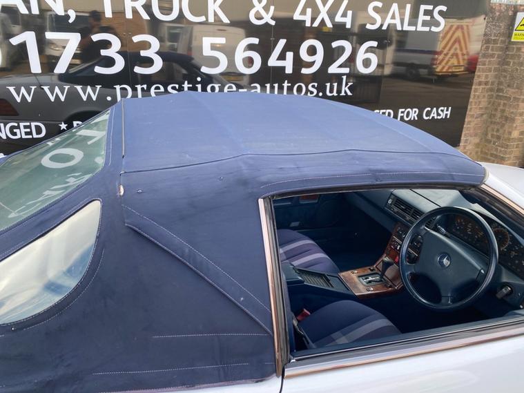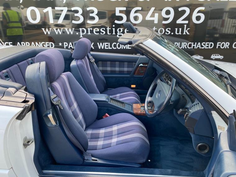 AUGUST 1992 MERCEDES 300SL AUTOMATIC 3.0 AUTOMATIC PETROL COVERED 147420. BLUE TARTAN STYLE SPORTS INTERIOR. FULLY COLOUR CODED. STUNNING LOOKER. HAD LOTS OF MONEY SPENT RECENTLY ON BIG SERVICE. PIONEER BLUETOOTH CD RADIO WITH AUX IN USB MUSIC MEDIA CONNECT. ALLOYS X5. AIR CON. CRUISE CONTROL. ELEC SEATS. WOOD TRIM. STANDARD CHEAPER TAX BAND 12 MONTHS PRICED 360 POUNDS. STARTS AND RUNS LOVELY. CURRENT MOT VALID TILL 19/08/2026. VERY RELIABLE CAR. SUPERB INVESTMENT FUTURE CLASSIC. NATIONWIDE DELIVERY AVAILABLE. FOR ALL ENQUIRIES PLEASE CALL JIMMY ON 01733604129 / 01733604129. FOR MANY MORE PICTURES PLEASE VISIT DEALER WEBSITE.