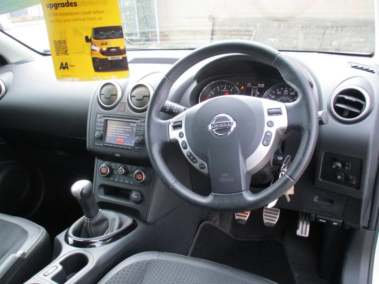12V Socket - Front18in Alloy Wheels - Onyx360 External BadgeABS - Anti Lock BrakesAUX-In SocketActive Front Head Restraints with Height AdjustmentActive Front Headrests with Height AdjustmentAirbag - DriverAirbag - Front PassengerAirbags - CurtainAirbags - SideAlarm - UltrasonicAluminium PedalsAmbient Footwell LightingArmrest - LeatherArmrest - RearAround View Monitor - 360 Bird-ViewAuto Rain Sensing WipersAutomatic Lighting SystemBluetooth Telephone IntegrationBrake AssistBumpers - Body ColouredCD Radio with 6 SpeakersChrome-Trimmed LCD CombimeterCruise Control with Speed LimiterDoor Mirrors - Electric Adjustment and HeatedDoor Mirrors - Gloss BlackDrive ComputerDriver Seat Height AdjustmentDual Zone Climate ControlEBD - Electronic Brakeforce DistributionESP - Electronic Stability ProgrammeElectric Folding Door MirrorsElectric Speed-Sensitive Power SteeringElectric Windows - Front and RearEngine ImmobiliserFront ArmrestFront Cupholders x2Front Fog LightsFront Map Reading LightsGloss Black Gear Shift SurroundGloss Black Interior Door HandleHead Restraints - 3 RearISOFIX Child Seat Anchoring PointsLeather Gear KnobLeather Steering WheelNissanConnectPanoramic Glass RoofParking Aid - RearPollen FilterRear CupholderRear Door Child LocksRear Parking SensorsRear Privacy GlassRear Reading LightsRemote Central LockingRoof Rails - Gloss BlackSeats - 60-40 Split Foldable Rear BenchSeats - Drivers Lumbar SupportSpeed-sensitive autolock functionSteering Wheel Mounted Audio ControlsTilt and Telescopic Adjustable Steering WheelTraction ControlTrip ComputerUSB - iPod Connectivity