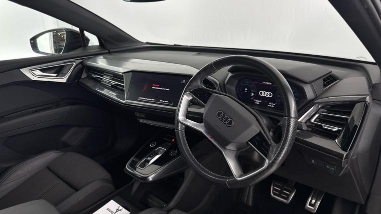 Presenting this Audi Q4 e-tron 35 S line Sportback 5dr Electric Auto, equipped with a 55kWh battery delivering 170 PS and having covered 31, 018 miles. This electric SUV offers a refined driving experience with practical appeal, complemented by stylish 20-inch 5-Y-spoke alloy wheels and rear parking sensors for enhanced convenience and safety when manoeuvring. The S line trim provides a sporty touch to the exterior and interior, delivering both comfort and sophistication. The automatic transmission ensures a smooth and responsive ride, suitable for city commutes or longer journeys. With its fully electric powertrain, the Q4 e-tron combines efficiency with advanced Audi technology, making it a practical choice for those seeking a premium, eco-friendly vehicle. Hippo Approved is known for a wide selection of vehicles suited for various needs and budgets. Each car undergoes a rigorous 130-point quality and safety inspection at our state-of-the-art £3 million preparation centre, ensuring your peace of mind. Additionally, we offer tailored finance packages for personal and business use, making it easy to acquire your ideal car.