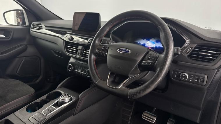 Presenting the Ford Kuga 2.5 EcoBoost Duratec 14.4kWh ST-Line SUV, a versatile plug-in hybrid with just 51, 641 miles recorded. Finished in elegant Solar Silver and enhanced by 18-inch, 10-spoke Rock Metallic alloy wheels, this model offers a blend of style and practicality. The interior boasts the sought-after Winter Pack, delivering extra comfort, alongside features like DEATC dual-zone electronic automatic temperature control, privacy glass, and a Quickclear heated windscreen for year-round convenience. Tech highlights include a full digital 12.3-inch instrument cluster and an additional 6.5-inch colour TFT display for clear driving data. Navigation is seamless with the Ford SYNC3 system, while the DAB audio provides excellent in-car entertainment. Keyless entry and start add everyday ease, complemented by cruise control with adjustable speed limiter for hassle-free long journeys. Front and rear parking sensors further enhance safety and manoeuvrability. Hippo Approved is known for a wide selection of vehicles suited for various needs and budgets. Each car undergoes a rigorous 130-point quality and safety inspection at our state-of-the-art £3 million preparation centre, ensuring your peace of mind. Additionally, we offer tailored finance packages for personal and business use, making it easy to acquire your ideal car.