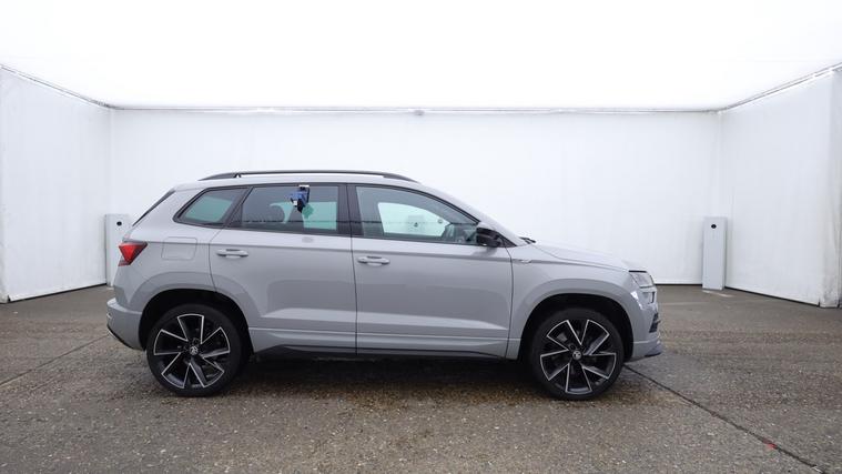 Presenting this Skoda Karoq 1.5 TSI ACT SportLine SUV, powered by a 150PS petrol engine paired with the efficient DSG automatic gearbox. With just 33, 334 miles recorded, this vehicle offers style and practicality. Standout features include striking 19-inch Vega Anthracite alloy wheels and a panoramic sunroof, delivering an enhanced driving experience and a bright, spacious cabin. Front and rear parking sensors provide added assistance when manoeuvring in tight spaces. This Karoq is fully Euro 6 compliant, making it a strong choice for those seeking an efficient, modern SUV. The 5-door design ensures easy access for all passengers, while the SportLine trim gives a dynamic aesthetic both inside and out. Hippo Approved is known for a wide selection of vehicles suited for various needs and budgets. Each car undergoes a rigorous 130-point quality and safety inspection at our state-of-the-art £3 million preparation centre, ensuring your peace of mind. Additionally, we offer tailored finance packages for personal and business use, making it easy to acquire your ideal car.