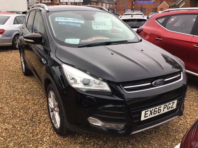 66 2016 FORD KUGA 2.0 TDCi (150) TITANIUM X - 5 door - Black - Alloy wheels - Climate control - Auto lights - Leather trim - 6 speed - Panoramic Roof - Heated seats -two owners - two keys - very clean - good value