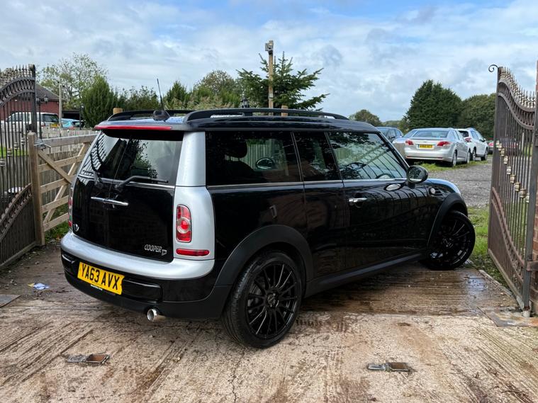 We are delighted to present to you this lovely example of a 2014 Mini Clubman 1.6 Cooper D finished in metallic black with half black leather interior. This Mini comes with full service history, 2 keys, A fresh 12 months M.O.T with no advisories included in sale, £20 a year road tax, 6 Speed gearbox, Chili Pack, Aftermarket Alloy wheels, Automatic Air conditioning, Cruise control, Interior light pack, Climate control, Excellent condition inside and out, AA approved garage, Free 12 months AA breakdown cover, HPI clear, Part ex welcome, Open 7 days a week (SUNDAYS APPOINTMENT ONLY)