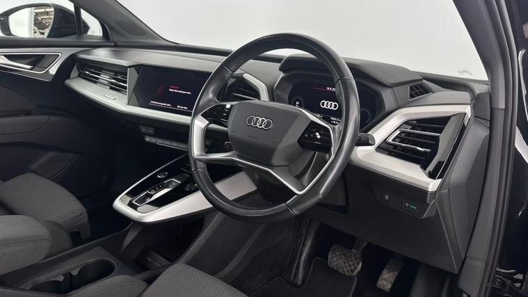 Presenting this Audi Q4 e-tron 35 Sport SUV 5dr Electric Auto with a 55kWh battery producing 170 PS, finished in stylish Mythos Black. Covering 49, 158 miles, this vehicle benefits from one recorded service, most recently at 21, 400 miles. Key features include striking 19-inch alloy wheels with a 5-W-spoke aero design in graphite grey with a gloss turned finish, providing an elegant yet sporty appearance. Rear parking sensors are fitted to help with everyday manoeuvring and parking. As a fully electric vehicle, the Q4 e-tron ensures a refined drive with zero emissions, supporting modern motoring demands. The cabin offers a comfortable and spacious SUV environment, ideal for both family and business use. Hippo Approved is known for a wide selection of vehicles suited for various needs and budgets. Each car undergoes a rigorous 130-point quality and safety inspection at our state-of-the-art £3 million preparation centre, ensuring your peace of mind. Additionally, we offer tailored finance packages for personal and business use, making it easy to acquire your ideal car.