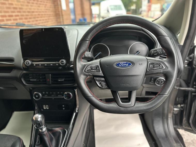 Discover this 2020 Ford EcoSport T ST-Line, a stylish and practical compact SUV. This Euro 6 compliant model boasts a responsive 1.0L petrol engine, offering an impressive fuel economy of 47 miles per gallon. Inside, you'll find the advanced Ford SYNC 3 Navigation system complete with an 8 inch touchscreen, seamlessly integrating Android Auto and Apple CarPlay for your convenience. The Rear View Camera Pack, including rear parking sensors and a camera, makes manoeuvring effortless, while the Electronic Automatic Temperature Control ensures a comfortable cabin environment. Automatic headlights further enhance your driving experience, providing optimal visibility in all conditions.This Ford EcoSport ST-Line is designed to offer a superior driving experience compared to other vehicles in its class. Its low CO2 emissions are a testament to its efficient engineering, making it a more environmentally conscious choice. The combination of its fuel efficiency, advanced technology, and practical features makes this 2020 EcoSport a compelling option for those seeking a well equipped and economical vehicle.Contact now to arrange a viewing or test drive! looks and drives superb, viewing highly recommended. CASH, BANK TRANSFER, and DEBIT CARD PAYMENTS are all accepted. For more information or to arrange a viewing, please call 01494352589, 782111, or 01494352589, or email us at dealer's website , or visit our website dealer's website We Buy Any Car, Van And Bike, call Steve on 01494352589. **Viewing by appointment only.**
