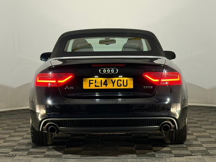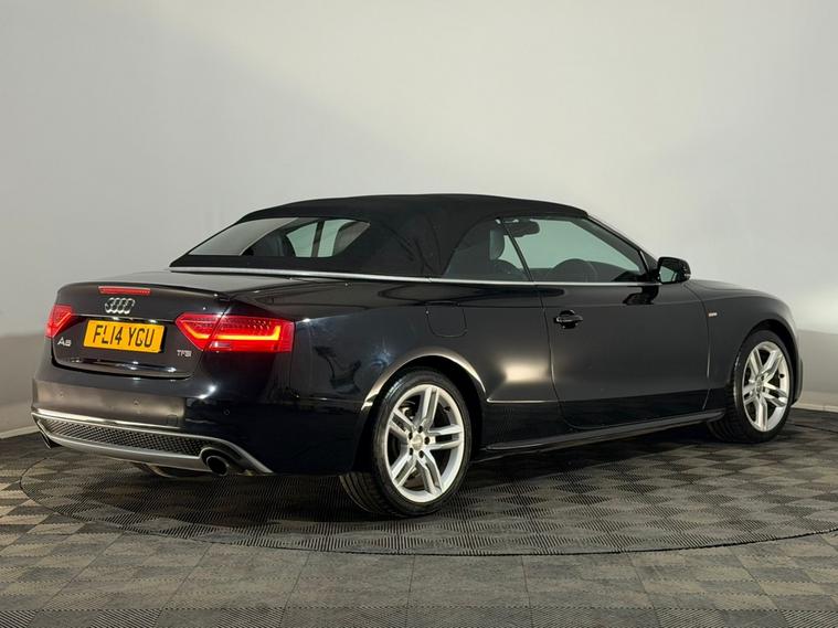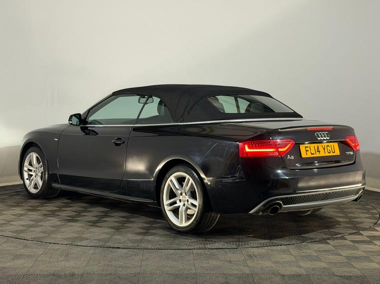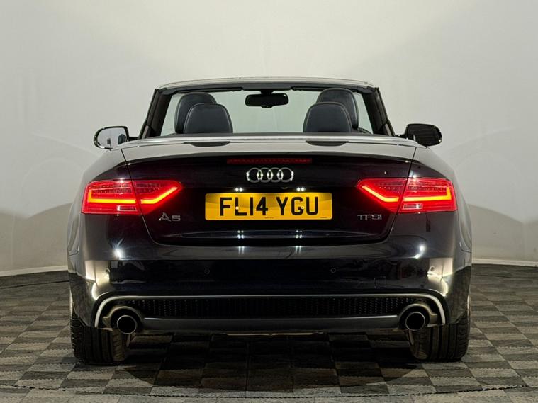 2014 Audi A5 S Line 2.0 Petrol TFSI Cabriolet Convertible in Stunning Black with 1 previous owner full service history 225 brake horsepower 44 combined miles per gallon ULEZ compliant and a new 12 month MOT for the new owner. This Audi A5 S Line TFSI Cabriolet is a premium open top car blending sporty performance with luxurious style ideal for dynamic drivers seeking efficiency and refinement. Powered by a 2.0 litre petrol engine producing 225 brake horsepower it achieves an impressive 44 combined miles per gallon with a top speed of 152 miles per hour delivering efficiency and power. The S Line trim enhances its appeal with 18 inch alloy wheels bi xenon headlights LED daytime running lights and rear parking sensors for a sporty exterior. Features like stop start technology air conditioning digital dual zone climate control and cruise control provide a comfortable and modern driving environment. The full leather S Line interior includes front 3 stage heated seats height adjustable front seats and ISOFIX anchor points for premium comfort and safety. Entertainment and connectivity are exceptional with a pop up digital display Audi CD DAB AM FM stereo system satellite navigation system voice control Bluetooth audio and telephone auxiliary audio input and USB audio and charging input. Additional conveniences include front and rear electric windows rear heated screen automatic lights automatic wipers auto tinting rear view mirror electric heated door mirrors leather arm rest cup holders 12 volt battery points adjustable steering column and multifunctional steering wheel. The automatic S-Tronic gearbox with paddle shift ensures a smooth and engaging drive. With 1 previous owner full service history and ULEZ compliance this A5 offers outstanding value for a high spec convertible. As an AA Approved Dealer Noahs Automotive Ltd ensures confidence with HPI clear vehicles competitive pricing checked daily across the UK market and nationwide delivery within 24 to 72 hours. Part exchanges are welcomed with fast fair valuations and extended warranty options are available upon enquiry. This high demand vehicle requires prompt action secure it with a small reservation deposit and request HD photos or live video walkarounds. Visit www noahsautomotive com to explore our regularly updated stock or contact Noahs Automotive Ltd at 02477022284 or 02477022284 located at CV10 9JD open 7 days a week including evenings to arrange a viewing or reserve this vehicle today.