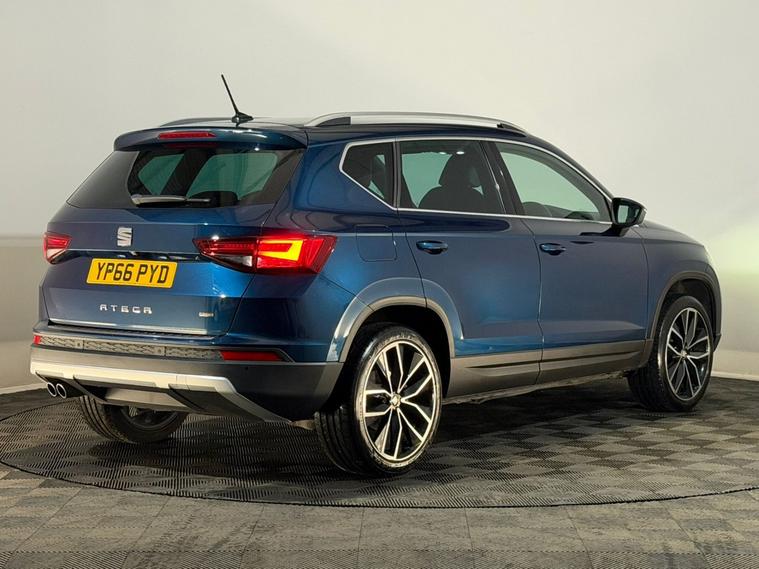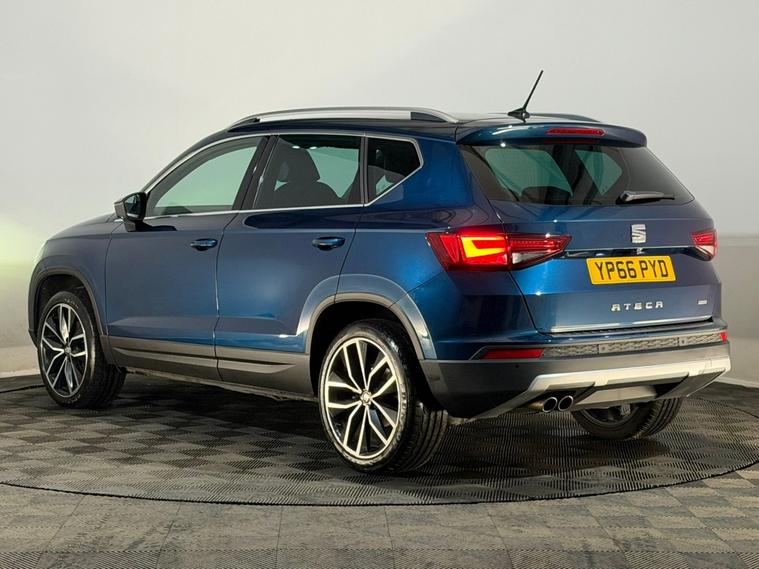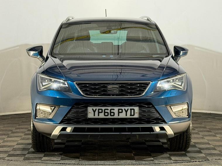 2016 SEAT Ateca Xcellence 2.0 Diesel TDI DSG Automatic 4Drive SUV in Stunning Blue with full service history recent service 2025 with gearbox serviced 190 brake horsepower 58 combined miles per gallon ULEZ compliant and a long MOT until September 2026. This SEAT Ateca Xcellence TDI is a premium 4 wheel drive SUV blending sporty style with luxurious practicality ideal for families or dynamic drivers seeking efficiency and performance. Powered by a 2.0 litre diesel engine producing 190 brake horsepower it achieves an impressive 58 combined miles per gallon with a top speed of 132 miles per hour delivering efficiency and power. The Xcellence trim enhances its appeal with 19 inch alloy wheels LED daytime running lights rear parking sensors rear privacy glass and keyless go for a sporty exterior. Features like stop start technology air conditioning digital dual zone climate control and cruise control provide a comfortable and modern driving environment. The full black leather interior includes front 3 stage heated seats height adjustable front seats and ISOFIX anchor points for premium comfort and safety. Entertainment and connectivity are exceptional with a touchscreen digital display SEAT CD DAB AM FM stereo system satellite navigation system reversing camera voice control Bluetooth audio and telephone auxiliary audio input and USB audio and charging input. Additional conveniences include front and rear electric windows rear heated screen automatic lights auto tinting rear view mirror electric heated powerfold door mirrors leather arm rest cup holders 12 volt battery points adjustable steering column and multifunctional steering wheel. The auto hold electric park brake SEAT drive profile vehicle dynamic modes 4 wheel drive and automatic tiptronic gearbox with paddle shift and sports mode ensure a versatile and engaging drive. With full service history recent service in 2025 and ULEZ compliance this Ateca offers outstanding value for a high spec SUV. As an AA Approved Dealer Noahs Automotive Ltd ensures confidence with HPI clear vehicles competitive pricing checked daily across the UK market and nationwide delivery within 24 to 72 hours. Part exchanges are welcomed with fast fair valuations and extended warranty options are available upon enquiry. This high demand vehicle requires prompt action secure it with a small reservation deposit and request HD photos or live video walkarounds. Visit www noahsautomotive com to explore our regularly updated stock or contact Noahs Automotive Ltd at 02477022284 or 02477022284 located at CV10 9JD open 7 days a week including evenings to arrange a viewing or reserve this vehicle today.