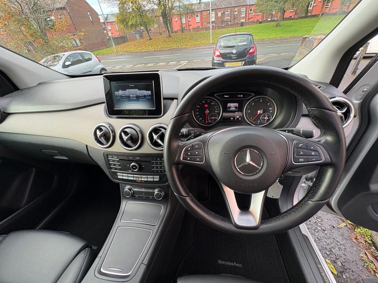 Supplying low mileage immaculate cars for over 40 years. Available to view at our Oldham branch is our stunning B Class auto. Clearly a well looked after car over the course of its life. Superb condition inside and out. £20 road tax and high MPG achievable, Supplied fully serviced with 12 months MOT and up to 2 years RAC warranty available. Electric windows and mirrors, Cruise control, Auto headlights, Air conditioning, Climate control, DAB radio, Apple CarPlay, Bluetooth, Full leather interior, Tyre pressure monitoring, Reverse sensors, Isofix, Driver passenger side and curtain airbags, Fitted genuine carpet mats, Cup holders,