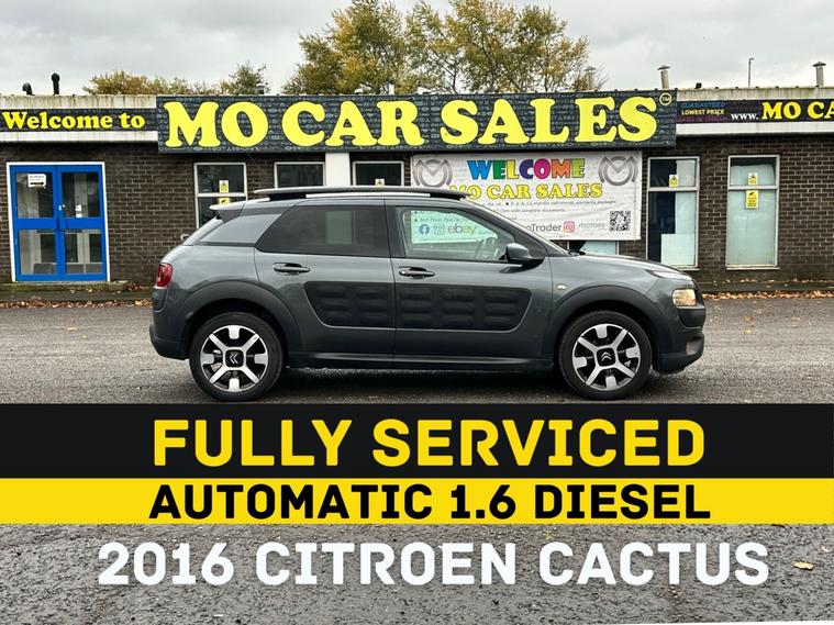 Stylish & Reliable French Car2016 Citroen C4 Cactus1.6 Diesel _AUTOMATIC ULEZ Free - EU6Mileage: 103k only - Genuine & WarrantedMoT: 25 March 2026 Road Tax: £20 / YearFormer Keepers: +2AA or Evo Warranty: 3 MonthsHPi: All Clear - No Category recordedFIXED PRICEDo not contact for a Lower Price PleaseLast Service at this mileage prior to the MOT.Media Touch Screen_Sat-Nav_Bluetooth_ HD Revers Camera_ Parking Sensors_ Climate Control, Alloy Wheels, Logbook present_ x1 Remote Key. V62 form for the logbook present.Excellent Runner - Good Body conditionPlease visit our garage. x21 Automatic Cars in Store.Mo Car Sales Tundry Way - Toll Bridge Road. Chain Bridge Industrial estate. Newcastle - Blaydon. NE21 5SJOpen 6 days a week: 10:00 to 17:30 Sunday: CLOSEDHundreds of happy customers throughout the country.Quality Cars at Bargain Price
