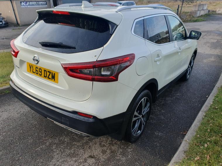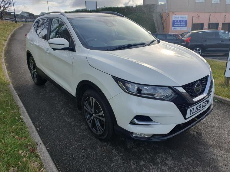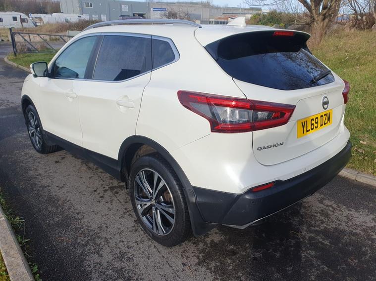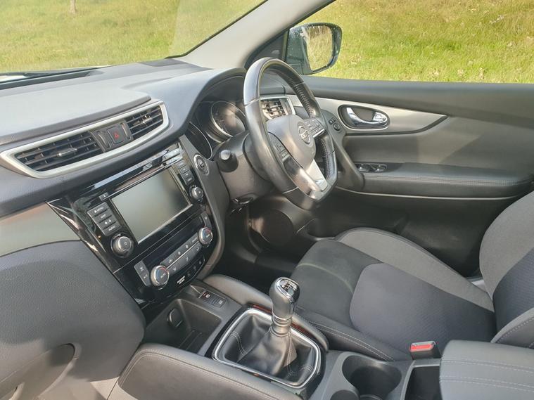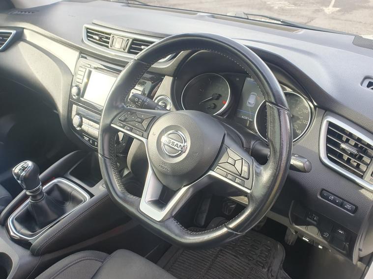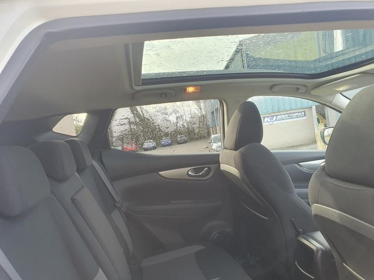 New timing belt kit and water pump, Advanced drive assist display 5 TFT coloured screen, Android Auto, Apple CarPlay preparation, Bluetooth connectivity, Electric speed sensitive power steering, Front parking sensors, Intelligent around view monitor, Intelligent parking assist, Lane departure warning system, Nissan connect evo 7" touchscreen navigation and entertainment system, Normal or sport selectable steering, Rear parking sensors, Rear view camera, Smartphone integration, Tomtom connected services, Traffic sign recognition, Voice control system, 6 speakers, AM/FM radio, CD audio system, Aux-in socket, DAB Digital radio, Rear USB connection, Steering wheel mounted audio controls, USB port, Anti dazzle rear view mirror, Auto wipers, Daytime running lights dip function when turn signal applied, Electric folding door mirrors, Electric front and rear windows with one touch illuminated window controls, Electric front/rear windows, Electrically adjustable door mirrors, Front fog lights, Heated door mirrors, High beam assist, Intelligent auto headlights, LED indicators in door mirrors, One touch 4x auto windows with illuminated switches, Panoramic sunroof with one touch shade, Privacy glass, Rear roof spoiler, Shark fin antenna, Signature LED daytime running lights, 60/40 split folding rear seat, Configurable luggage board system, Drivers seat manual height adjust, Dual zone climate control, Individual rear seat reading lights, ISOFIX restraints on outer rear seats x2, Leather D shaped steering wheel, Manual height adjustable front passenger seat, Manual lumbar support on driver seat, One touch electric shade, Pollen filter, Tilt/telescopic adjustable steering wheel, Safety shield plus pack, 6 airbags - Driver, front passenger, curtain and side airbags, ABS, ESP, EBD and brake assist, Auto hold function, Child locks on rear doors, Electronic parking brake, Front passenger airbag deactivation, Hill start assist, Intelligent emergency braking with pedestrian recognition, Anti-theft immobiliser, Intelligent Key, Remote central locking, Thatcham Cat.1 alarm, Tyre puncture repair kit