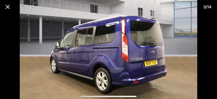 DO NOT MISS THIS GRAND TOURNEO ULEZ ECOBLUE SUPER ECONOMY DIESEL AUTOMATIC, IDEAL FOR CAMPER LEISURE, LOADS OF ROOM WITH A SLEEP UNFER THE STARS PANORAMIC ROOF!! BE QUICK, DEPOSIT NOW!!3 point seatbelts on all seats, Driver and passenger airbags, Drivers seatbelt reminder, Front and rear curtain airbags, Front side airbags, Passenger seatbelt warning indicator, 2nd remote key, Immobiliser, Remote central double locking, Active city stop, ESC with ABS, Diesel particulate filter, Electric folding and heated door mirrors, Heated washer jets, Heated windscreen, Power front/rear windows with global close, Privacy glass, Body colour door handles, Body colour side mouldings, Body coloured bumpers, Chrome headlight surround, Dual sliding side load doors, Panoramic roof, Roof rails with crossbars, Solid paint, Automatic lights and wipers, Cornering light, Daytime running lights, Front fog lights, 4 way manually adjustable passenger seat with height, reach, tilt, backrest and headrest, Front head restraints, Map pocket on front seat backs, Rear head restraints, Second row split/folding seats, Third row dual adjustable individual seats, Front carpet mats, 2nd row centre armrest, Cloth upholstery, Driver's armrest, Front seatback folding tables, Glovebox with lid, Leather gearknob, Leather steering wheel, Lockable glovebox lid, Overhead storage shelfs, Reach + rake adjustable steering column, Dual zone air conditioning, Pollen filter, Easy fuel capless refuelling system, Cruise control + speed limiter, Power assisted steering, Rear parking sensor, Trip computer, Bluetooth + USB, Steering wheel mounted audio controls, 16"" 5 spoke alloy wheels, Tyre inflation kit