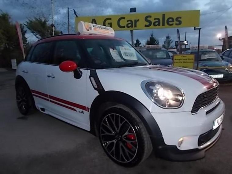 stunning mini cooper s john cooper works ( JCW ) 4x4 all 4, 1.6 petrol turbo 124, 000 miles with good service history, full black leather with red piping, sat-nav, 2 x keys 1 previous keeper, in gleaming white with red gloss decals mirrors and roof, parking Aid, 6 speed manual, A real head turner runs and drives well.