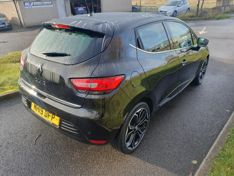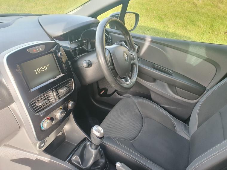 New timing belt kit and water pump, Bluetooth connectivity, Cruise control, Speed limiter, Eco mode, Rear parking sensors, Smartphone cradle, Variable PAS, Aux-in socket, DAB Digital radio, Black headlamp surrounds, Body coloured rear spoiler, Drivers one touch window with anti-pinch feature, Electric adjustable door mirrors, Electric front windows, Extra tinted glass on rear windows + tailgate, Front fog lamps, Heated door mirrors, LED daytime running lights, 60/40 split rear seats, Isofix system on outer rear seats, Multi function steering wheel, Pollen filter, Style cloth upholstery, System for Restraint and Protection SRP-front seats, ABS+EBD+Brake assist, Driver and passenger front and side airbag deactivation, Driver/Front Passenger airbags, ESP + Traction control + Understeer control, Front side airbags(head+thorax), Height adjustable drivers seatbelt, Hill start assist, Anti-drill door locks, Child lock control of rear doors and windows, Deadlocking system, Hands free Renault card, Locking fuel filler cap, RAID (Renault Anti-Intruder Device) with automatic door locking, Remote central locking, Thatcham Cat 2 engine immobiliser, 17" Black alloy wheels