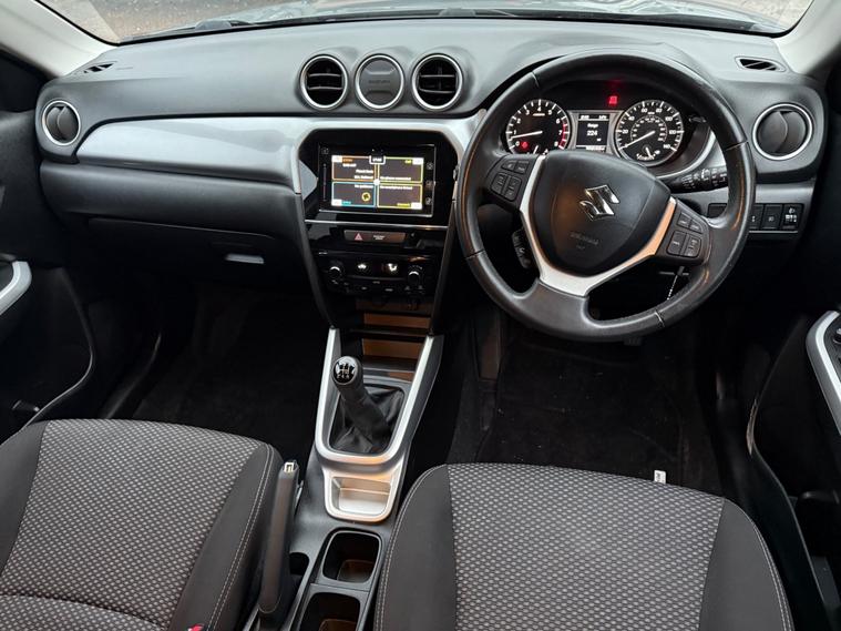FULL HISTORY, SUPER TIDY, VITARA, NICE SPEC, LOW MILES, BE QUICK!! 3 point ELR front seat belts, 3 point rear seatbelts, Childproof rear door locks, Curtain airbags, Driver/Front Passenger airbags, Drivers knee airbag, Front and rear seatbelt reminder, Front passenger airbag deactivation, Front seatbelt pretensioners with force limiters, Height adjustable front seatbelts, Side airbags, Tyre pressure monitor, Alarm, Deadlocks, Immobiliser, Light - on and Key in reminder, Locking wheel nuts, Remote central door locking, Anti-lock Brake System + Electronic Brakeforce Distribution + Brake assist, Electronic Stability Programme, Hill hold control, Electric adjustable heated door mirrors, Electric front+rear windows, Front and rear intermittent wipers, Rear privacy glass, Body colour door mirrors and handles, Body coloured bumpers, Front skid plate - silver, Rear skid plate - silver, Silver front grille and side vents, Silver roof rails, Solid paint, Wheel arch extensions, Front fog lamps, Headlamp levelling, LED daytime running lights, 3 rear headrests, 60/40 split folding rear seat, Driver/front passenger seat height adjustment, Front headrests, Isofix child seat preparation, Passenger seat back pocket, Top tether anchor plate for isofix child seat, Silver instrument panel, Front footwell lights, Front map light, Glovebox light, Luggage area lamp, Driver/passenger sunvisors with ticket holders + illuminated vanity mirrors, 12V socket in centre console and luggage area, 3 spoke leather covered steering wheel, Centre console storage, Chrome interior door handles, Cloth upholstery, Front and rear bottle holders, Front cupholders x 2, Front/rear assist grips, Luggage cover, Luggage hooks, Removable boot floor, Tilt/telescopic adjustable steering wheel, Automatic air conditioning, Pollen filter, Cruise control + speed limiter, Power assisted steering, Rear parking camera, Information display, Lights on warning, Satellite navigation system, Service indicator, Bluetooth hands free telephone connection, 4 speakers, DAB Digital radio, Radio/CD, Steering wheel mounted audio controls, USB connection, 17"" Silver alloy wheels, Tyre repair kit