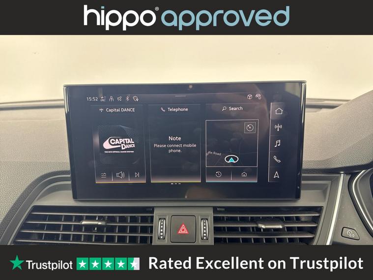 Hippo Approved is known for a wide selection of vehicles suited for various needs and budgets. Each car undergoes a rigorous 130-point quality and safety inspection at our state-of-the-art 3 million preparation centre, ensuring your peace of mind. Additionally, we offer tailored finance packages for personal and business use, making it easy to acquire your ideal car. Introducing this Audi Q5: a superb blend of performance and luxury with 38, 998 miles on the clock. This 2.0 TFSI 45 Sport SUV model features a powerful petrol engine offering 265 PS, paired with an S Tronic transmission and the renowned quattro all-wheel drive system, ensuring a smooth and controlled drive under Euro 6 emissions standards. The exterior showcases 18-inch alloy wheels in a dynamic 5-twin-spoke design, while the interior includes a 12.3-inch Audi Virtual Cockpit Plus, offering three layout designs for enhanced driving information. Enjoy seamless connectivity with a Bluetooth interface and entertainment options via DAB Digital Radio. The Deluxe 3-Zone Electronic Climate Control and heated front seats promise comfort in every season. Navigate with ease using the MMI Navigation Plus on a 10.1-inch touchscreen, and park confidently with the reversing camera. The 3-spoke multi-function leather steering wheel with paddles adds a touch of sportiness to this refined SUV.