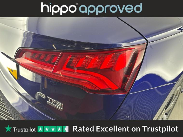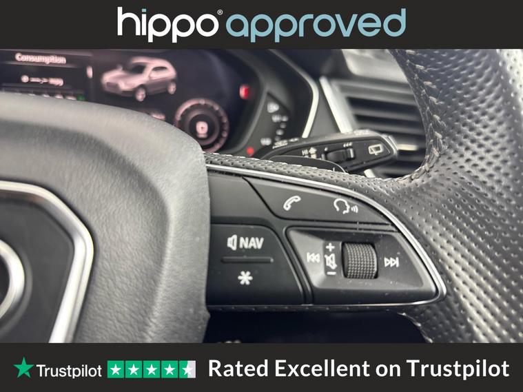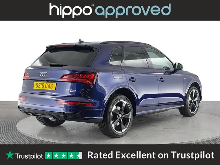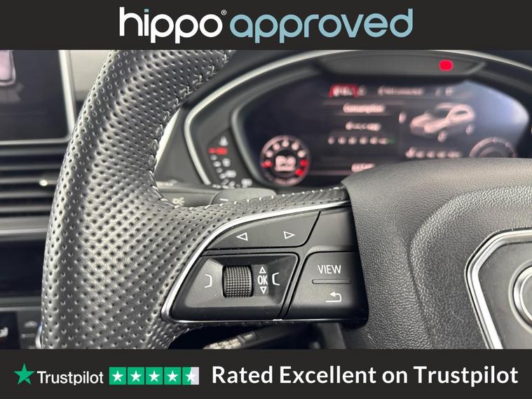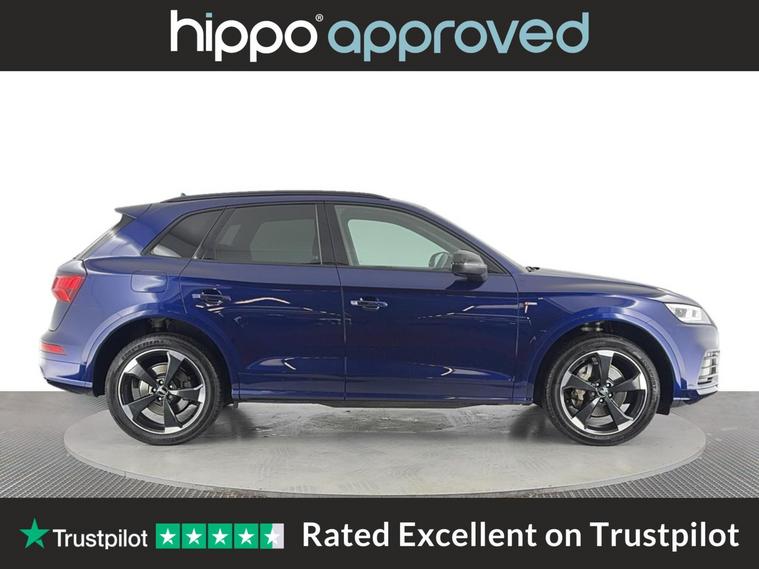 Presenting this Audi Q5 2.0 TFSI 45 Black Edition SUV, featuring a robust 245 PS petrol engine paired with S Tronic automatic transmission and quattro all-wheel drive, compliant with Euro 6 standards. With a recorded mileage of 63, 378 miles and a full service history including four services, the most recent at 56, 000 miles, this vehicle demonstrates responsible upkeep. A highlight of this Q5 is the panoramic glass sunroof, allowing for an airy and bright interior, enhancing the overall driving experience. The exterior is complemented by 20-inch alloy wheels in a 5-arm rotor design, finished in gloss anthracite black with diamond-cut detailing from Audi Sport, contributing to both style and presence. This Audi Q5 combines performance with aesthetic appeal while providing assurance in terms of maintenance and servicing. Hippo Approved is known for a wide selection of vehicles suited for various needs and budgets. Each car undergoes a rigorous 130-point quality and safety inspection at our state-of-the-art 3 million preparation centre, ensuring your peace of mind. Additionally, we offer tailored finance packages for personal and business use, making it easy to acquire your ideal car.