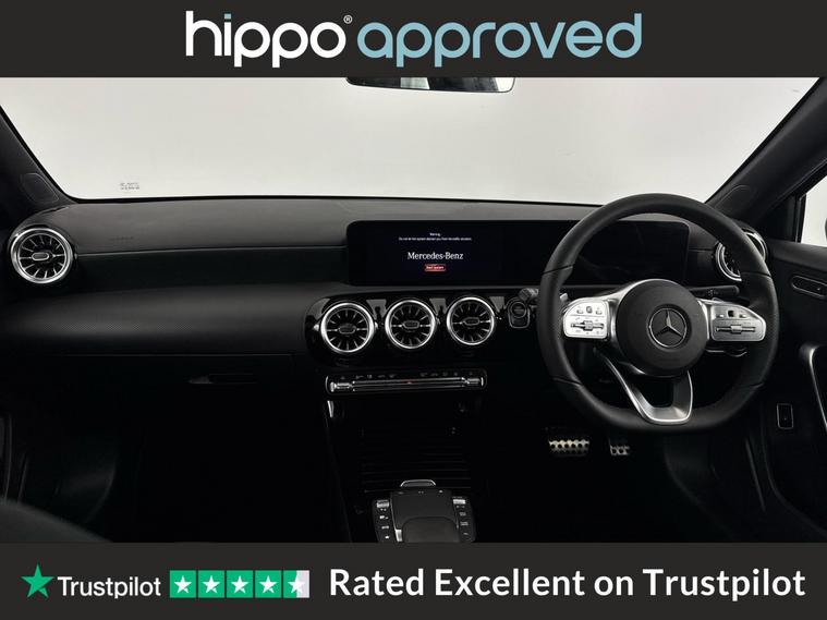 Presenting this Mercedes-Benz A Class 1.3 A250e 15.6kWh AMG Line Night Edition (Premium Plus), a saloon that combines efficiency and comfort. Powered by a petrol plug-in hybrid engine with 218 ps and paired with the seamless 8G-DCT automatic gearbox, this vehicle is compliant with Euro 6 (s/s) emissions standards. Finished with premium 19-inch AMG multi-spoke alloy wheels painted black with a high-sheen rim flange, the exterior stands out with a striking, refined appearance. The Night Edition package brings unique styling details, while the included Premium Plus specification offers enhanced features for a comfortable drive. This A Class has completed 41, 434 miles and comes with a documented service history comprising three services, the most recent at 39, 000 miles, ensuring assured ongoing care. The Parking Package adds convenient parking assistance for those busy city journeys. Hippo Approved is known for a wide selection of vehicles suited for various needs and budgets. Each car undergoes a rigorous 130-point quality and safety inspection at our state-of-the-art 3 million preparation centre, ensuring your peace of mind. Additionally, we offer tailored finance packages for personal and business use, making it easy to acquire your ideal car.