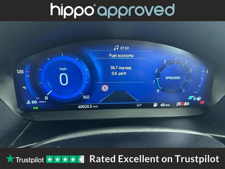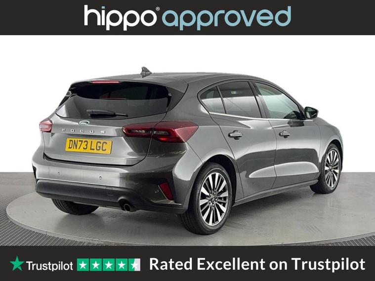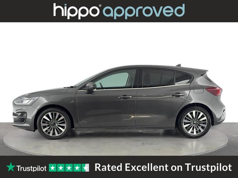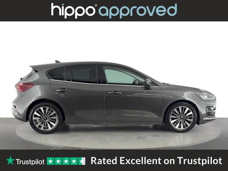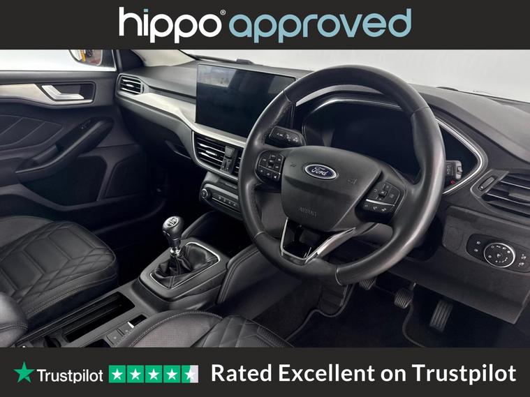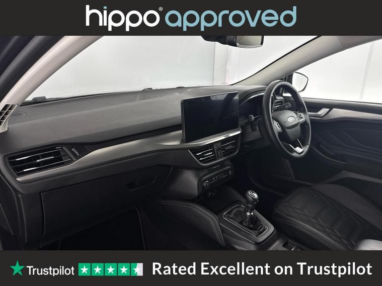 Presenting this Ford Focus 1.0T EcoBoost Titanium X Hatchback, finished in a striking Pearl Grey and featuring 17-inch 5x3 spoke machine-finished alloy wheels. This petrol model delivers 125 PS and is equipped with a smooth manual gearbox, compliant with Euro 6 emission standards. With just 40, 486 miles on the clock, it has benefited from two recorded services, the most recent at 36, 000 miles, offering reassurance on its well-maintained condition. Inside, the vehicle is fitted with Ford SYNC4 Navigation, operated via a crisp 13.2-inch touchscreen, ensuring an intuitive and connected driving experience. The Titanium X trim provides a refined interior and a high level of specification, offering comfort and convenience for driver and passengers alike. Hippo Approved is known for a wide selection of vehicles suited for various needs and budgets. Each car undergoes a rigorous 130-point quality and safety inspection at our state-of-the-art 3 million preparation centre, ensuring your peace of mind. Additionally, we offer tailored finance packages for personal and business use, making it easy to acquire your ideal car.