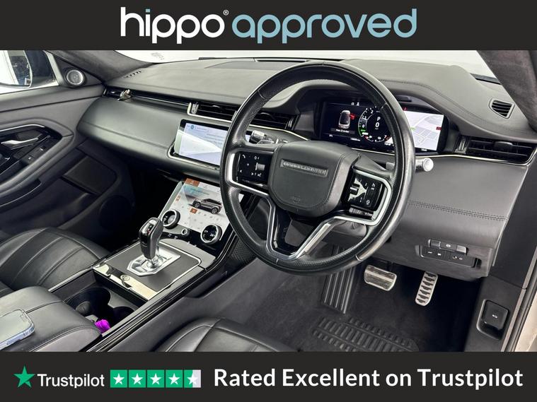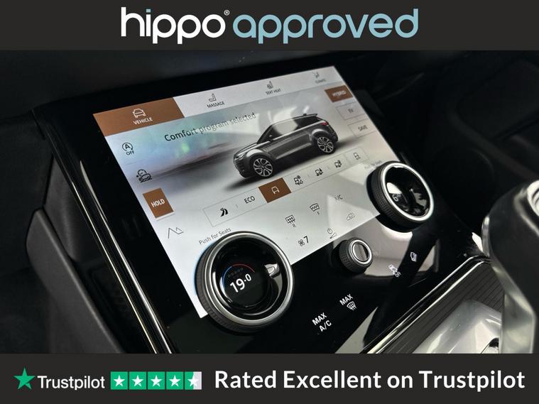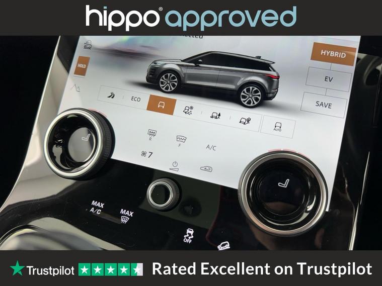 Hippo Approved is known for a wide selection of vehicles suited for various needs and budgets. Each car undergoes a rigorous 130-point quality and safety inspection at our state-of-the-art 3 million preparation centre, ensuring your peace of mind. Additionally, we offer tailored finance packages for personal and business use, making it easy to acquire your ideal car. Presenting the Land Rover Range Rover Evoque, a sophisticated blend of luxury and innovation. This 1.5 P300e 12.2kWh Autobiography SUV is a petrol plug-in hybrid, boasting 309 ps and an impressive Euro 6 rating, ensuring remarkable efficiency and performance. With 46, 649 miles on the clock, this Evoque is both seasoned and well-maintained. The vehicle is equipped with 14-way heated and cooled electric seats, complete with driver memory and 2-way manual headrests for optimal comfort. Ride in style on 20-inch alloy wheels with a striking diamond-turned finish, paired with all-season tyres for year-round reliability. Advanced technology includes adaptive cruise control, Bluetooth connectivity, and a Meridian Surround Sound System. Enjoy seamless driving with features such as a fixed panoramic roof with powered blind, front and rear parking aid, rear view camera, and a heated windscreen. The interior luxury is highlighted by a perforated full leather steering wheel with heating capability, and two-zone climate control adds to the comfort of every journey. Complete with the Autobiography Exterior Pack, this Range Rover Evoque epitomises exceptional design and functionality.