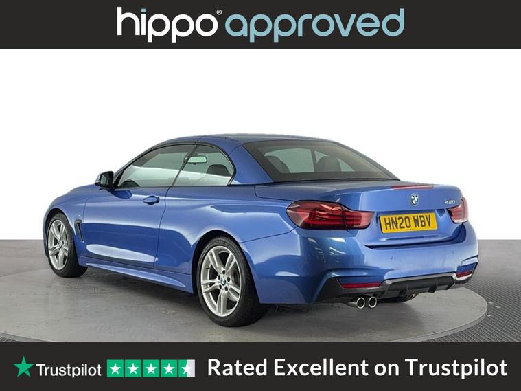 Presenting this BMW 4 Series 2.0 420i GPF M Sport Convertible, finished in striking Estoril Blue with 18-inch M Double Spoke 400M alloy wheels. This petrol automatic model offers a smooth and engaging drive, delivering 184 PS combined with the efficiency benefits of Euro 6 (s/s) compliance. With only 53, 048 miles on the clock, it blends style and practicality, thanks to the renowned M Sport specification. The convertible roof allows for top-down motoring at the touch of a button, enhancing your driving experience through every season. The interior is crafted for comfort and control, complementing the exterior's sporty aesthetics. Hippo Approved is known for a wide selection of vehicles suited for various needs and budgets. Each car undergoes a rigorous 130-point quality and safety inspection at our state-of-the-art 3 million preparation centre, ensuring your peace of mind. Additionally, we offer tailored finance packages for personal and business use, making it easy to acquire your ideal car.