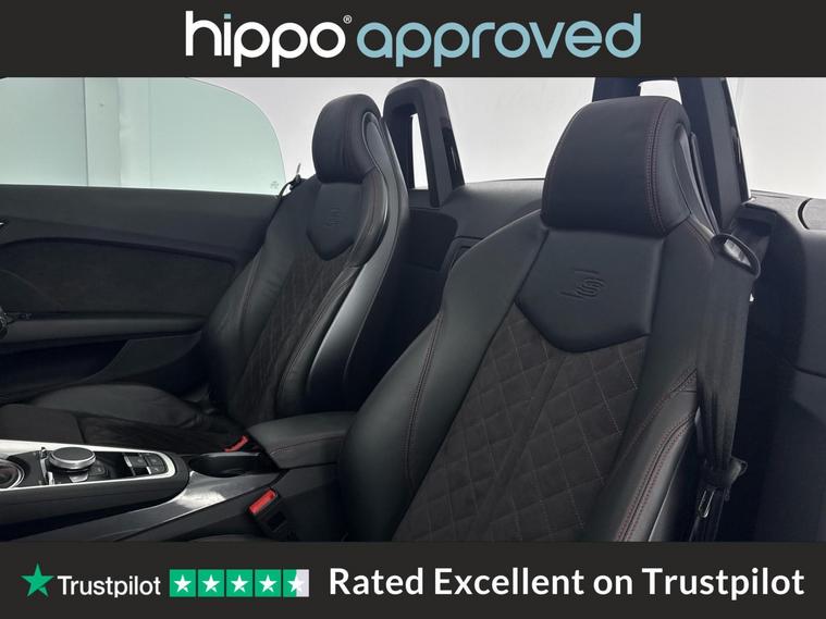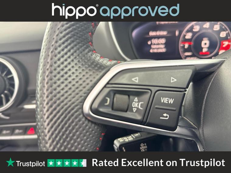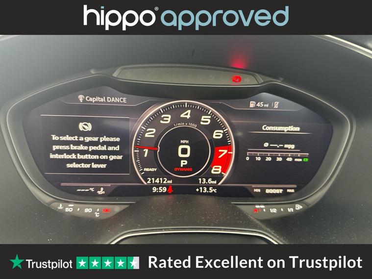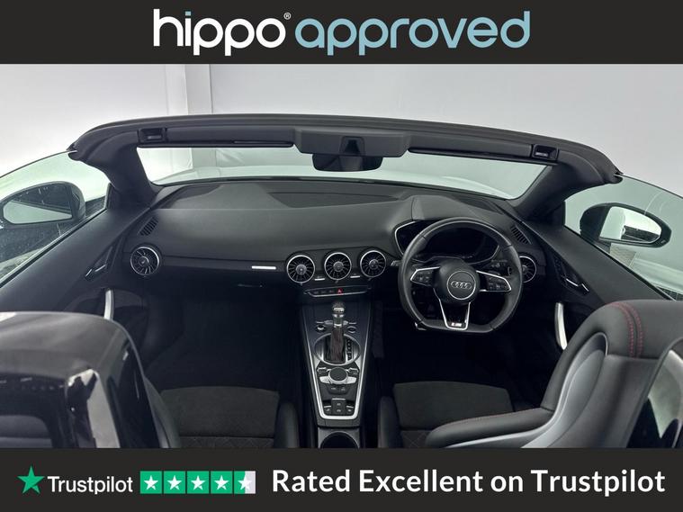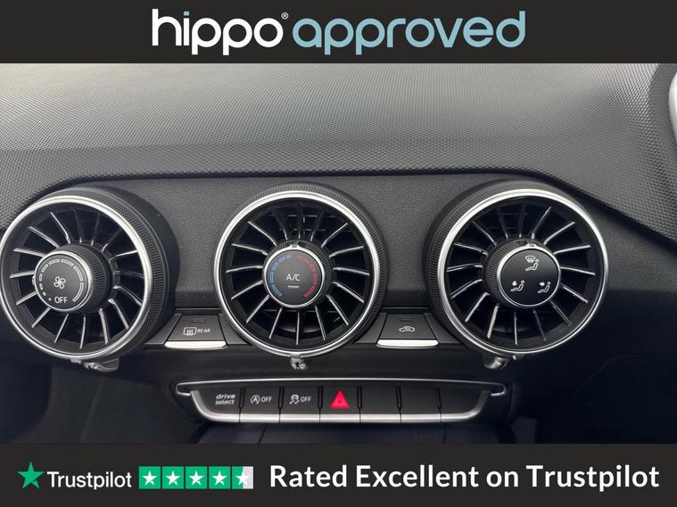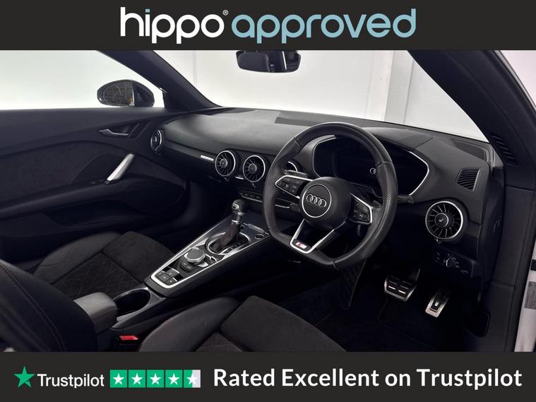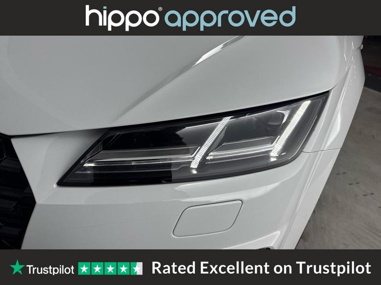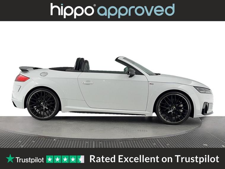 Hippo Approved is known for a wide selection of vehicles suited for various needs and budgets. Each car undergoes a rigorous 130-point quality and safety inspection at our state-of-the-art 3 million preparation centre, ensuring your peace of mind. Additionally, we offer tailored finance packages for personal and business use, making it easy to acquire your ideal car. Presenting the Audi TT 2.0 TFSI 45 Black Edition Roadster, a vehicle that combines performance and style with practicality. With a mileage of 22, 000 miles, this petrol-powered car features an efficient S Tronic transmission and quattro all-wheel-drive system, compliant with Euro 6 emissions standards. Its 20-inch alloy wheels with a 10-Y Spoke Design in Gloss Black and Diamond Cut finish add a touch of elegance to its sleek exterior. Inside, the Audi Virtual Cockpit provides a modern and streamlined driver interface. The AMI - Audi Music Interface and DAB Digital Radio, complemented by Bluetooth Mobile Telephone Preparation, offer a comprehensive entertainment package. Enjoy your journey in comfort with heated front seats and manual air conditioning. Practical features include Cruise Control for longer drives and Rear Parking Sensors for added convenience. The S Line badge on the steering wheel adds to its sporty appeal, making this roadster a sophisticated choice for any driver.