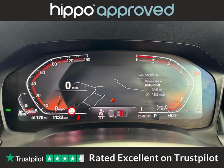 Presenting this BMW 3 Series 2.0 320d M Sport Saloon, a refined and capable vehicle, now available at Hippo Approved. This automatic, Euro 6 compliant diesel saloon has covered 54, 453 miles, offering efficiency and dynamic performance for both motorway and city driving. The exterior is enhanced by striking 19-inch M Light Double Spoke 791M alloy wheels in bicolour Jet Black, fitted with mixed and runflat tyres for added reassurance. Step inside to experience comfort and sophistication, with Vernasca leather upholstery in Black, complemented by elegant grey stitching throughout the cabin. Hippo Approved is known for a wide selection of vehicles suited for various needs and budgets. Each car undergoes a rigorous 130-point quality and safety inspection at our state-of-the-art 3 million preparation centre, ensuring your peace of mind. Additionally, we offer tailored finance packages for personal and business use, making it easy to acquire your ideal car.