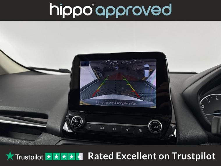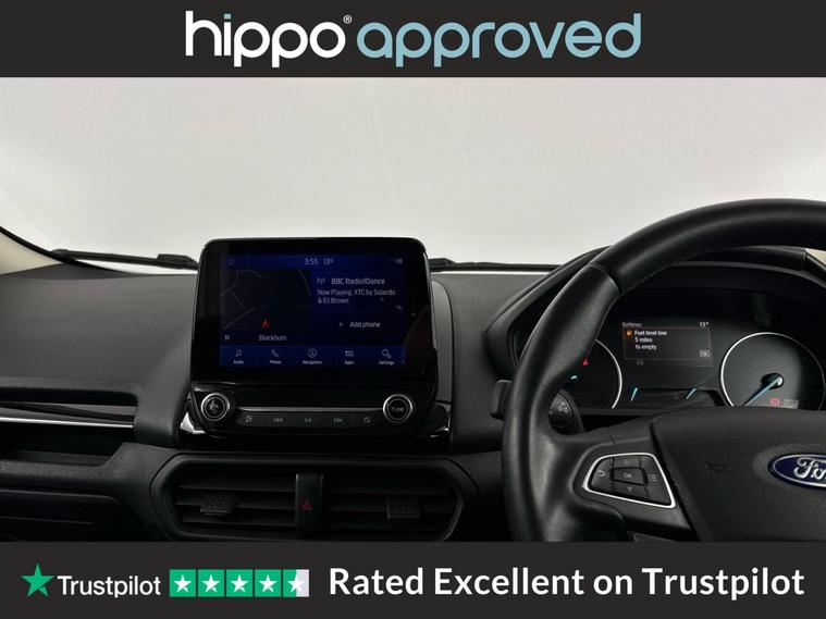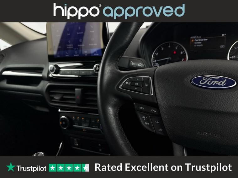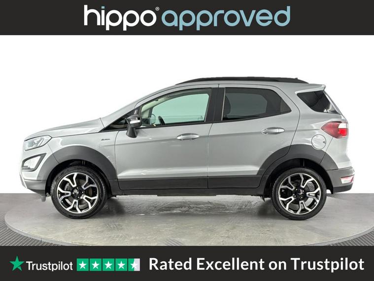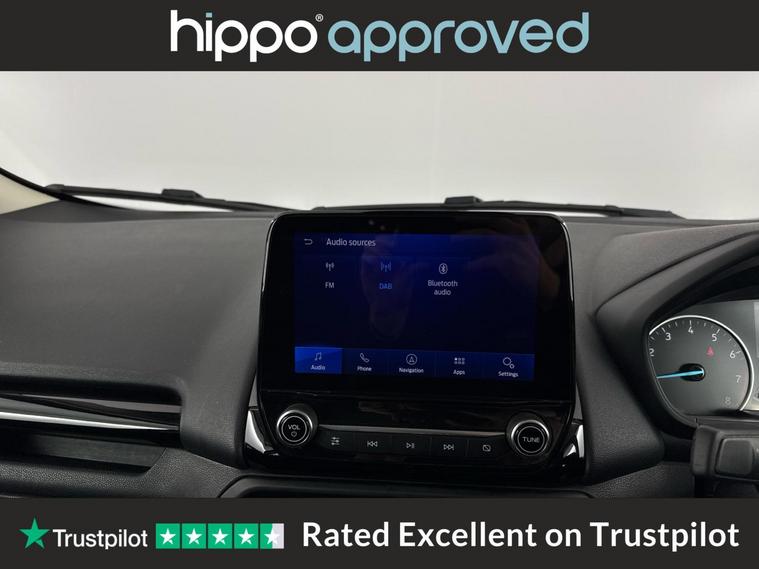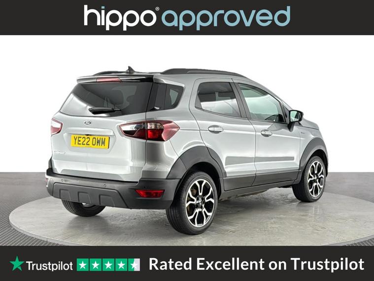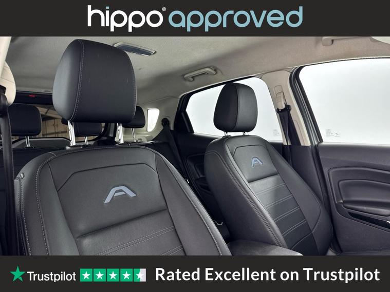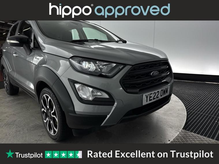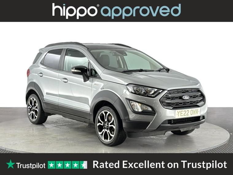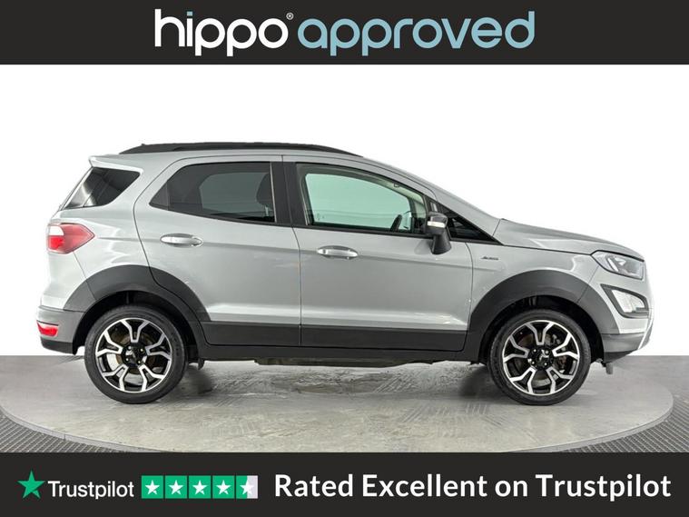 Hippo Approved is known for a wide selection of vehicles suited for various needs and budgets. Each car undergoes a rigorous 130-point quality and safety inspection at our state-of-the-art 3 million preparation centre, ensuring your peace of mind. Additionally, we offer tailored finance packages for personal and business use, making it easy to acquire your ideal car. Presenting the Ford EcoSport 1.0T EcoBoost Active SUV, an ideal choice for those seeking a reliable and stylish vehicle. With just 44, 959 miles on the clock, this Solar Silver SUV stands out with its modern design and functionality. Equipped with 17-inch alloy wheels featuring a 5-spoke Y-design and dark inserts, it combines aesthetics with performance. Enhance your driving experience with Ford SYNC 3 Navigation, showcased on an 8-inch touchscreen, and enjoy the convenience of cruise control and rear parking sensors. The EcoSport also includes a Quickclear heated front windscreen, ensuring fast defrosting on chilly mornings, while the privacy glass adds a touch of sophistication. Inside, the leather steering wheel with remote audio controls and electronic automatic temperature control (EATC) provide comfort and ease. Additionally, the rear-view camera pack ensures improved visibility and confidence while manoeuvring. Embrace a seamless blend of practicality and style with this exceptional Ford EcoSport.