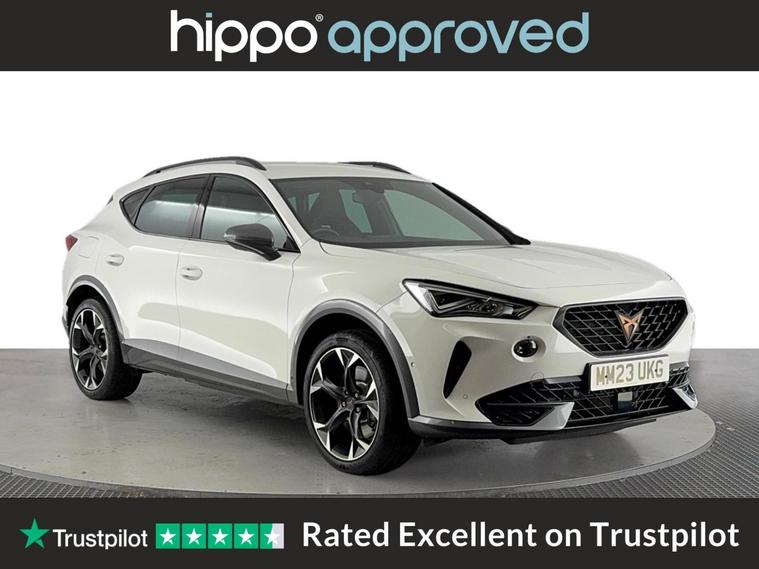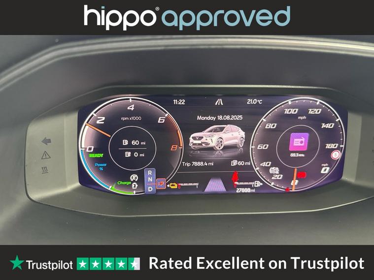Hippo Approved is known for a wide selection of vehicles suited for various needs and budgets. Each car undergoes a rigorous 130-point quality and safety inspection at our state-of-the-art 3 million preparation centre, ensuring your peace of mind. Additionally, we offer tailored finance packages for personal and business use, making it easy to acquire your ideal car. Introducing the CUPRA Formentor 1.4 eHybrid VZ1 SUV, a remarkable blend of performance and efficiency. This petrol plug-in hybrid boasts a robust 245 ps, paired with a smooth DSG transmission. With just 27, 884 miles on the odometer and a full service history, this vehicle assures reliability. The Formentor features striking 19-inch alloy wheelsexclusive machined sport editions in matt black and silveradding an athletic touch to its sleek white exterior. Maneuver with confidence using park assist, complete with front and rear sensors. Navigate every journey seamlessly, thanks to the integrated navigation system. This vehicle underwent its last service at 22, 742 miles, ensuring its top condition. Whether you're commuting or planning a weekend getaway, the CUPRA Formentor is designed to meet diverse needs, delivering both style and function in one impressive package.