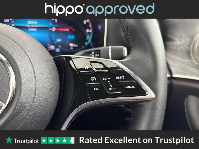 Hippo Approved is known for a wide selection of vehicles suited for various needs and budgets. Each car undergoes a rigorous 130-point quality and safety inspection at our state-of-the-art 3 million preparation centre, ensuring your peace of mind. Additionally, we offer tailored finance packages for personal and business use, making it easy to acquire your ideal car. We present the Mercedes-Benz E Class 2.0 E300de AMG Line Night Edition Estate, a stylish and efficient diesel plug-in hybrid with a mileage of 37, 441 miles. This model features a 13.5kWh battery and a robust G-Tronic+ transmission, adhering to Euro 6 standards for improved efficiency. The vehicle boasts 18-inch alloy wheels, AMG 5-twin-spoke design, painted in high gloss black with a high-sheen finish. Enjoy comfortable drives with cruise control and a variable speed limiter. Stay connected through the DAB digital radio tuner and a 10.25-inch cockpit display offering high resolution and three display styles. The panoramic electric glass sunroof and privacy glass enhance the driving experience, while the parking package with a 360-degree camera ensures ease of manoeuvrability. Heated front seats, a multifunction Nappa leather steering wheel, and the THERMOTRONIC climate control system provide additional comfort. The comprehensive mirror package completes this premium offering, combining practicality with luxury.