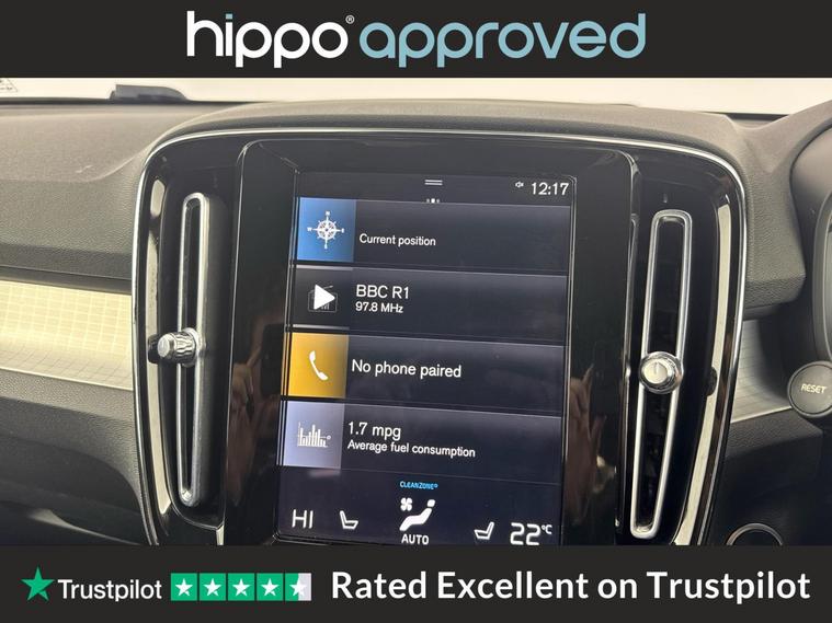 Presenting this Volvo XC40 1.5h T4 Recharge Plus SUV with 57, 252 miles, finished in striking Fjord Blue with a City Block Textile interior in Grey Melange. This stylish plug-in hybrid benefits from Euro 6 compliance and offers 211ps through an automatic gearbox. Ride in style on 18-inch alloy wheels with a 5-spoke diamond-cut, high-gloss black finish. Comfort is enhanced with 2-zone electronic climate control and a CleanZone air quality system with pollen filter. The Climate Pack provides heated front seats, a heated steering wheel, and a heated windscreen for added winter convenience. Practical park assists at both front and rear, as well as a rear park assist camera, further aid manoeuvrability. Bluetooth handsfree connectivity and Sensus Navigation support effortless journeys, while cruise control adds to driving ease. Hippo Approved is known for a wide selection of vehicles suited for various needs and budgets. Each car undergoes a rigorous 130-point quality and safety inspection at our state-of-the-art 3 million preparation centre, ensuring your peace of mind. Additionally, we offer tailored finance packages for personal and business use, making it easy to acquire your ideal car.