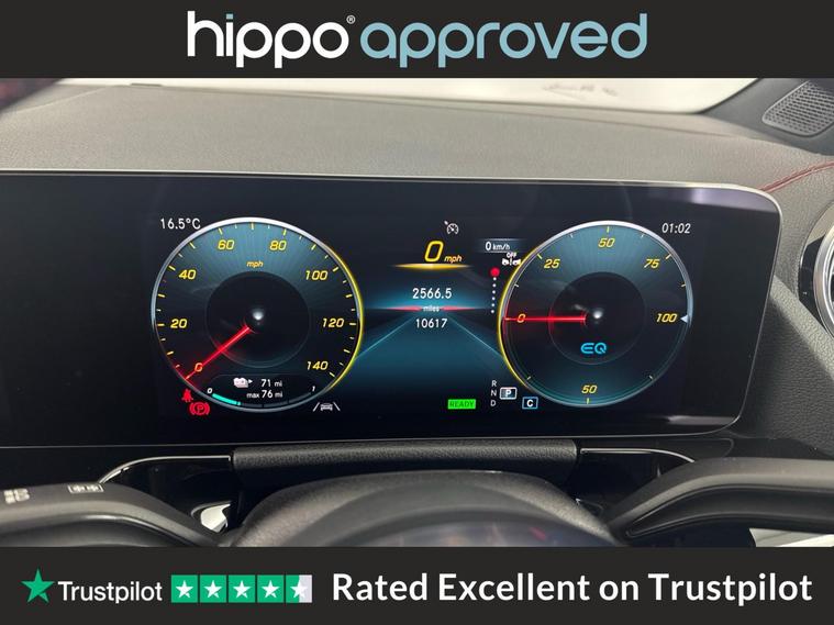 Presenting this 2022 Mercedes-Benz EQA 350 66.5kWh AMG Line, with 10, 424 miles on the clock. This sophisticated 5-door electric SUV offers a smooth automatic transmission and the confidence of the 4MATIC all-wheel-drive system, powered by a 292PS electric motor for a refined and efficient drive. The vehicle boasts a striking Polar White exterior, complemented by 18-inch AMG 5-spoke alloy wheels finished in black with high-sheen accents, enhancing its modern appearance. The AMG Line styling ensures sporty appeal, while the interior provides the high level of comfort and quality expected from Mercedes-Benz. This EQA offers a blend of practicality and cutting-edge electric performance, with enough space for families or those seeking everyday versatility. Having covered 10, 424 miles, it represents a superb opportunity to enjoy premium electric motoring. Hippo Approved is known for a wide selection of vehicles suited for various needs and budgets. Each car undergoes a rigorous 130-point quality and safety inspection at our state-of-the-art 3 million preparation centre, ensuring your peace of mind. Additionally, we offer tailored finance packages for personal and business use, making it easy to acquire your ideal car.