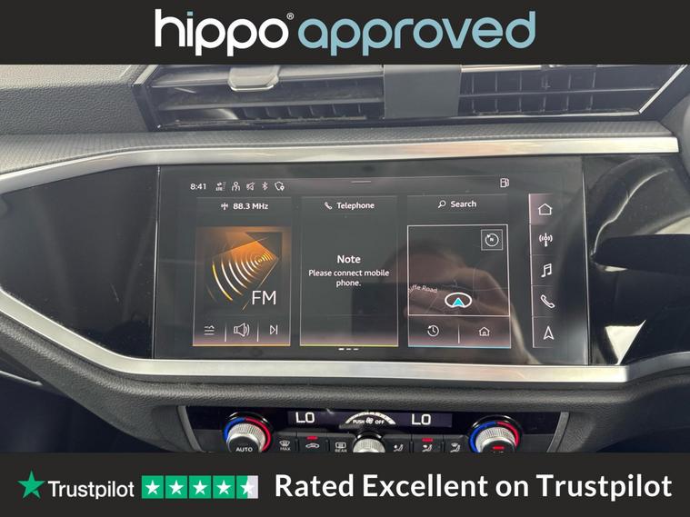 Hippo Approved is known for a wide selection of vehicles suited for various needs and budgets. Each car undergoes a rigorous 130-point quality and safety inspection at our state-of-the-art 3 million preparation centre, ensuring your peace of mind. Additionally, we offer tailored finance packages for personal and business use, making it easy to acquire your ideal car. Presenting the Audi Q3, an impressive SUV with a 1.5 TFSI CoD 35 Technik specification. This vehicle seamlessly combines performance and practicality, offering a petrol S Tronic Euro 6 engine with 150 ps. With 43, 677 miles clocked, it remains in excellent condition, ready to serve both urban and rural adventures. Equipped with 17-inch alloy wheels featuring a 5-twin-spoke design, the Audi Q3 offers both style and comfort. The interior showcases a 3-spoke leather multi-function steering wheel with adjustable height and reach, ensuring an adaptable driving experience. The dual-zone electronic climate control maintains a pleasant atmosphere, while the MMI Navigation Plus, complete with a high-resolution 10.1-inch touchscreen, keeps you on track. This model includes a cruise control system with a speed limiter for relaxed motorway driving, as well as rear parking sensors for effortless manoeuvring. Stay connected via the Bluetooth interface, and enjoy a selection of stations with the DAB digital radio system. Choose the Audi Q3 for a reliable and well-rounded driving experience.