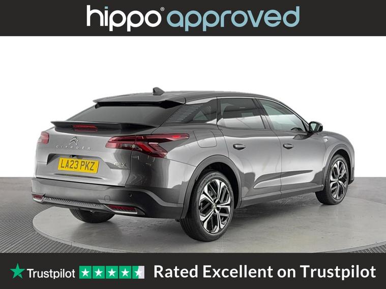 Presenting this Citroen C5 X 1.2 PureTech Shine Plus Hatchback 5dr Petrol EAT8 Euro 6 (s/s) (130 ps), with just 28, 332 miles on the clock and a well-documented service history, having received two servicesthe most recent at 24, 000 miles. This vehicle stands out with its striking 19-inch Aero-X diamond-cut alloy wheels featuring Onyx Black paint and Aero inserts, combining style and practicality. The exterior is enhanced further by front LED daytime running lights, ensuring improved visibility and a contemporary look. Designed for comfort and everyday reliability, this Citroen C5 X offers ample interior space and a refined driving experience. The efficient 1.2 PureTech engine, paired with an EAT8 automatic gearbox, provides a smooth and responsive journey, all compliant with Euro 6 emissions standards. Hippo Approved is known for a wide selection of vehicles suited for various needs and budgets. Each car undergoes a rigorous 130-point quality and safety inspection at our state-of-the-art 3 million preparation centre, ensuring your peace of mind. Additionally, we offer tailored finance packages for personal and business use, making it easy to acquire your ideal car.