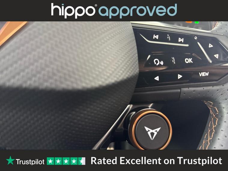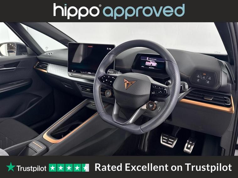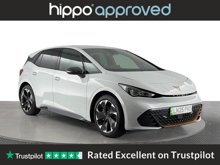 Presenting the CUPRA Born e-Boost 59kWh V2 Hatchback 5dr Electric Auto, now available with just 4, 575 miles on the clock. This electric hatchback offers impressive performance with 230 PS, supported by sophisticated 19-inch Machined Typhoon alloy wheels for enhanced road presence and stability. The thoughtfully designed cabin includes Climatronic dual-zone air conditioning, maintaining comfort for both driver and passengers regardless of external conditions. With advanced electric technology, this low-mileage vehicle promises both efficiency and a refined driving experience. Hippo Approved is known for a wide selection of vehicles suited for various needs and budgets. Each car undergoes a rigorous 130-point quality and safety inspection at our state-of-the-art 3 million preparation centre, ensuring your peace of mind. Additionally, we offer tailored finance packages for personal and business use, making it easy to acquire your ideal car.