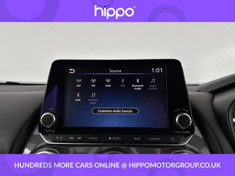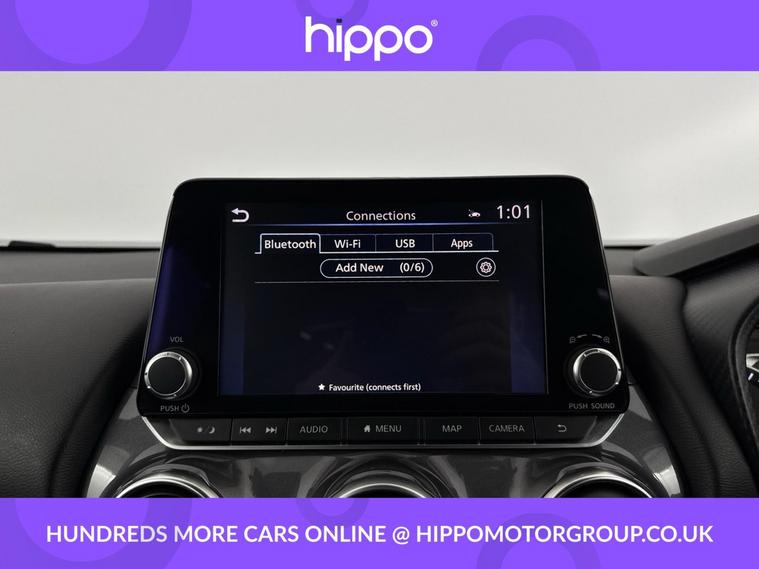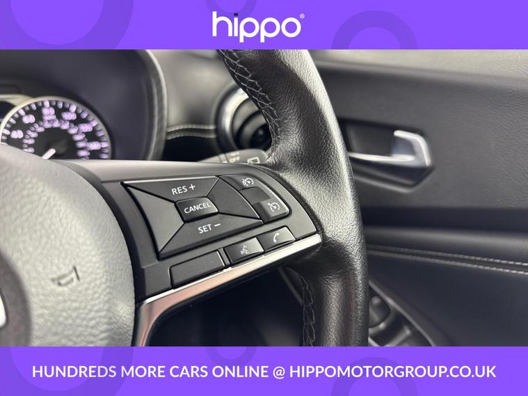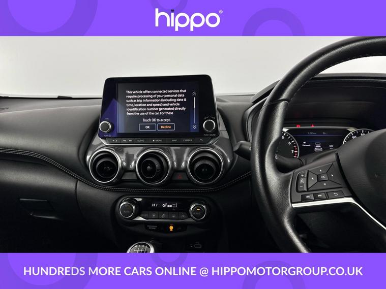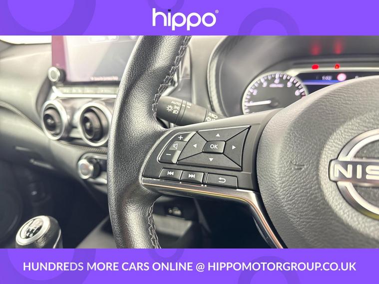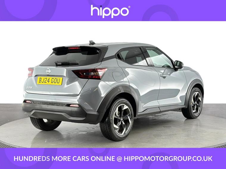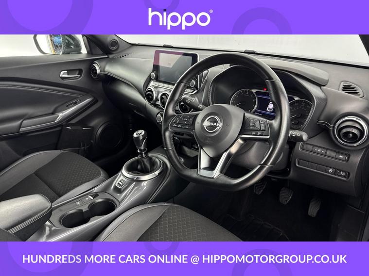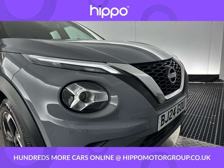 Presenting this Nissan Juke 1.0 DIG-T N-Connecta SUV 5dr Petrol Manual Euro 6 (s/s), having covered 41, 017 miles and boasting an impressive range of features. This vehicle is fitted with two-tone 17-inch alloy wheels and benefits from both front and rear parking sensors, enhancing manoeuvrability in tight spaces. The rear view camera further assists with reversing, while rear privacy glass adds style and comfort for passengers. Inside, enjoy the convenience of automatic climate control and the comfort of a leather, multifunctional steering wheel. The Juke is equipped with a NissanConnect 8-inch touchscreen entertainment system, which includes integrated navigation with TomTom Traffic updates, keeping you informed throughout your journeys. Stay entertained with DAB radio and benefit from cruise control with speed limiter functionality for effortless motorway driving. Hippo Approved is known for a wide selection of vehicles suited for various needs and budgets. Each car undergoes a rigorous 130-point quality and safety inspection at our state-of-the-art 3 million preparation centre, ensuring your peace of mind. Additionally, we offer tailored finance packages for personal and business use, making it easy to acquire your ideal car.