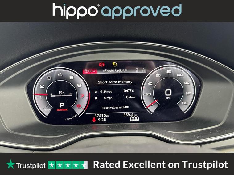 Hippo Approved is known for a wide selection of vehicles suited for various needs and budgets. Each car undergoes a rigorous 130-point quality and safety inspection at our state-of-the-art 3 million preparation centre, ensuring your peace of mind. Additionally, we offer tailored finance packages for personal and business use, making it easy to acquire your ideal car. Presenting the Audi Q5, a distinguished SUV that merges performance with sophistication. This model, with only 37, 000 miles on the clock, is powered by a robust 2.0 TFSI 45 petrol engine. It features the S Tronic gearbox and Audi's renowned quattro all-wheel drive, conforming to Euro 6 emissions standards. Experience driving comfort with 18-inch alloy wheels and a suite of sophisticated features, including the Audi Virtual Cockpit Plus with a 12.3-inch screen offering customisable layouts. Stay connected with the Bluetooth Interface and enjoy clear audio with the DAB Digital Radio. The Deluxe 3-Zone Electronic Climate Control ensures an optimal cabin atmosphere, complemented by heated front seats for added comfort. Navigate with ease using the MMI Navigation Plus on a 10.1-inch touchscreen. For added convenience, the vehicle comes equipped with front and rear parking sensors, a reversing camera, and an LED Interior Lighting Pack.